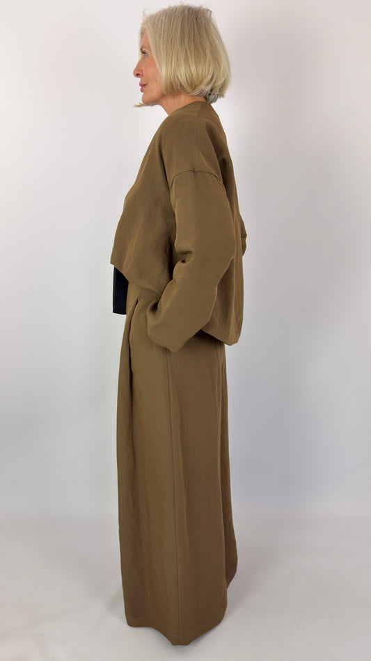 Opificio Neirami's collections are characterized by luxurious fabrics, intricate embellishments, and elegant silhouettes. Each piece reflects a fusion of Italian heritage and modern sensibility, offering timeless elegance with a distinctive edge. Opificio Neirami is known for its use of high-quality materials such as silk, wool, cashmere, and fine Italian textiles.