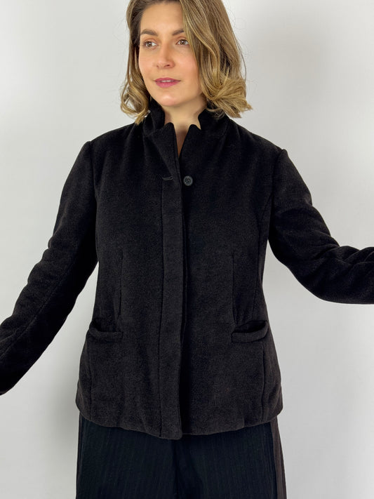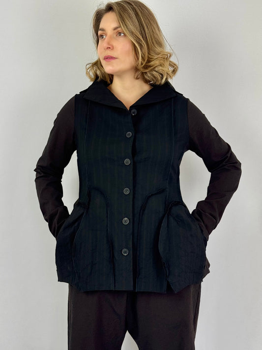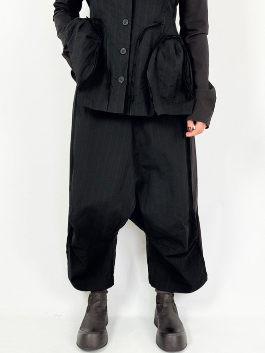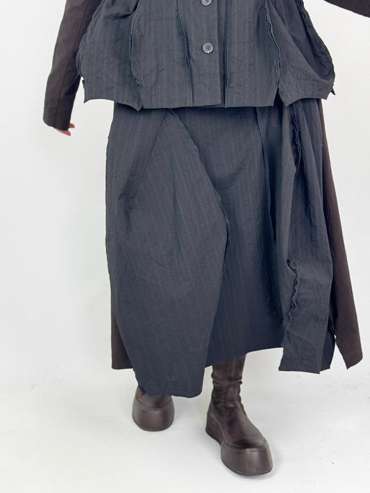 Rundholz Mainline is a German fashion brand known for its avant-garde aesthetic and experimental designs. The brand often features innovative silhouettes, asymmetry, and layering, embracing a monochromatic color palette with a focus on dark tones.