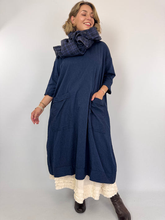Sold outBarbara Lang ECHA Scarf Navy Tartan