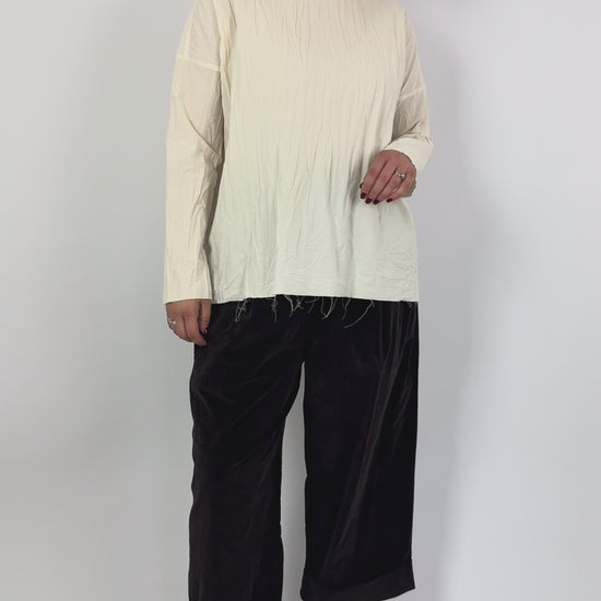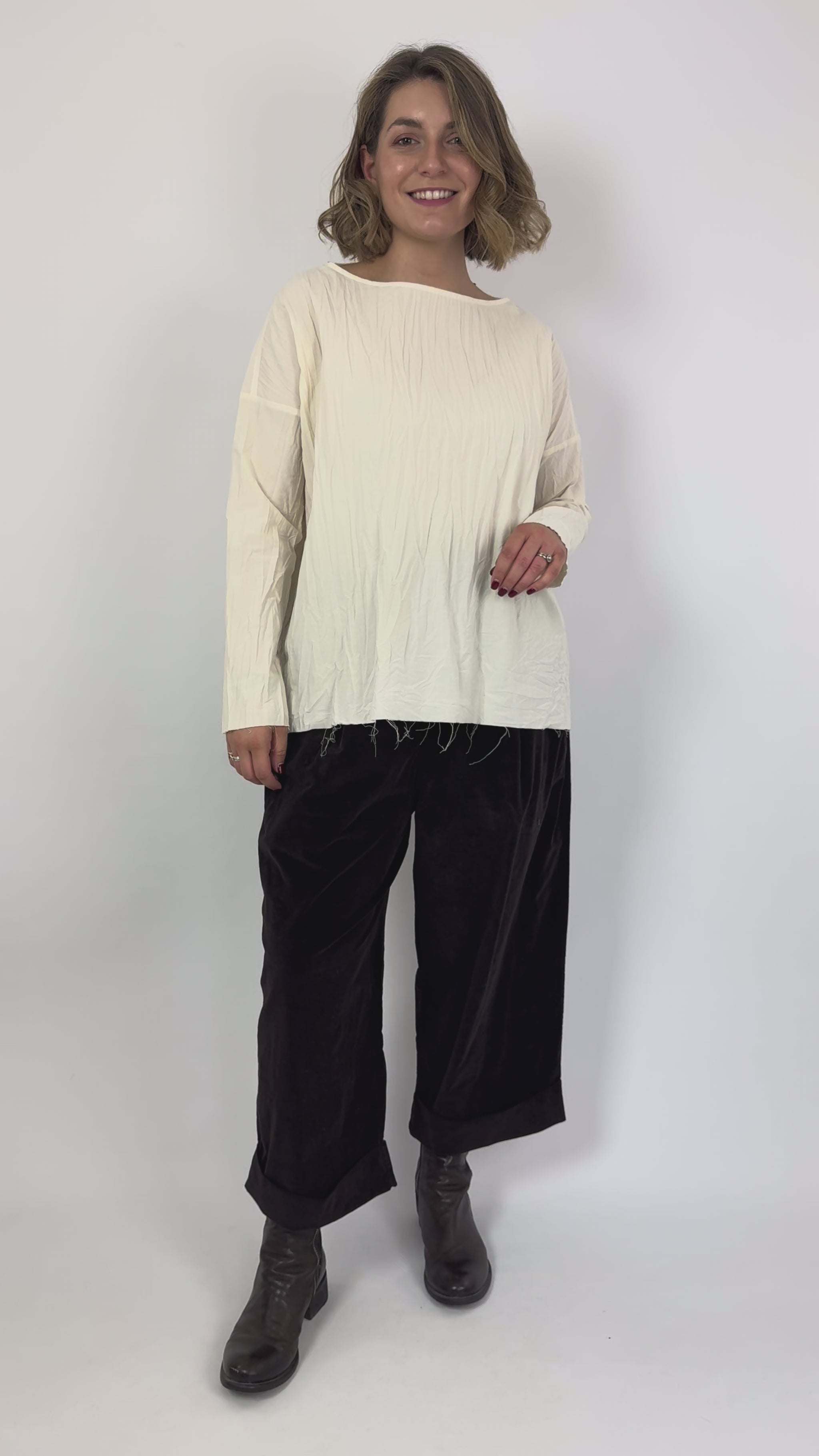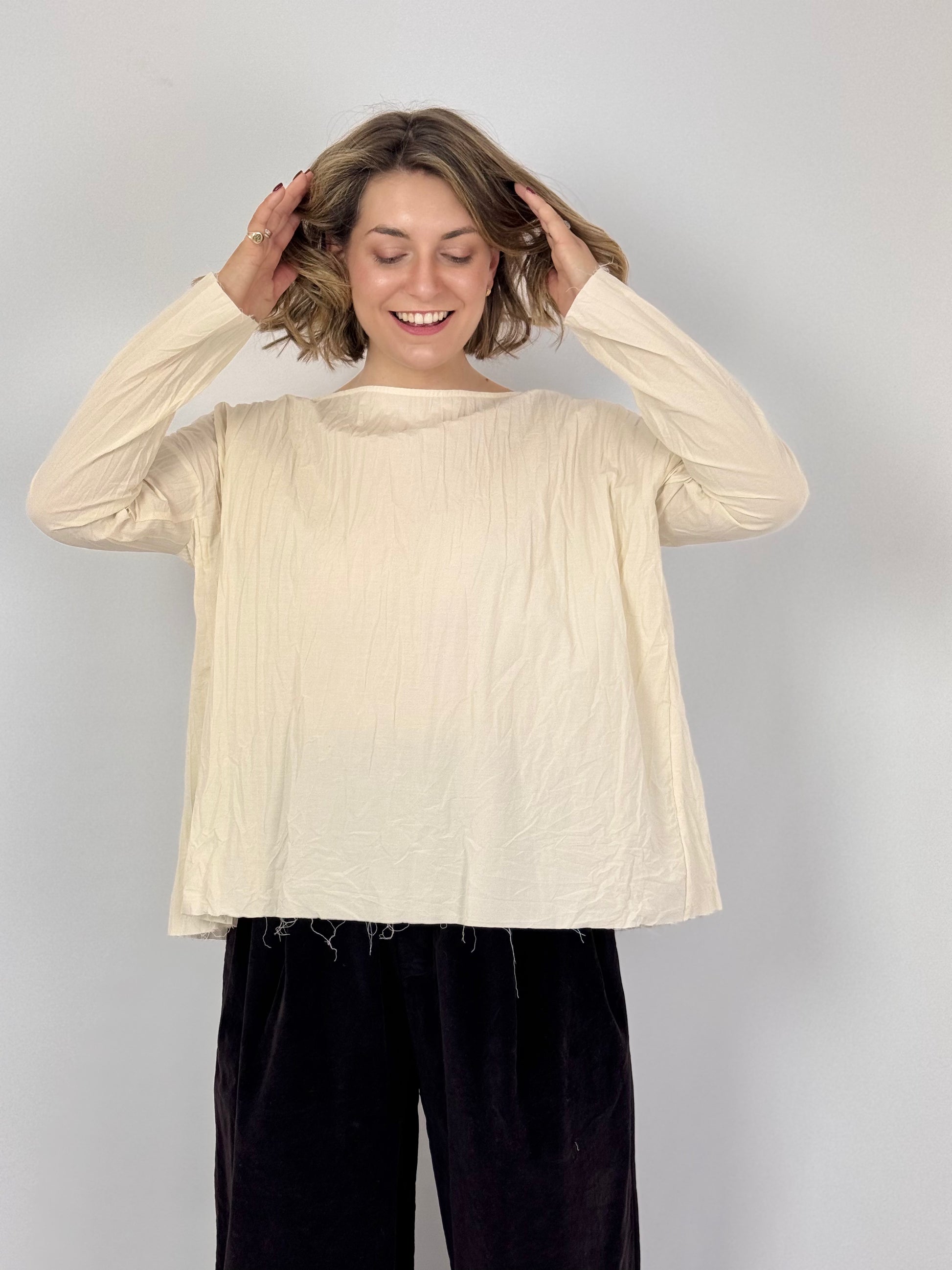 Crafted from calico cotton with a delicate crinkled texture, the Album di Famiglia 149 Shirt Natural features a flattering boat neckline and an elegant A-line shape. Its raw edges add a subtle, artisanal touch, combining effortless style with expert tailoring for a refined yet relaxed silhouette.