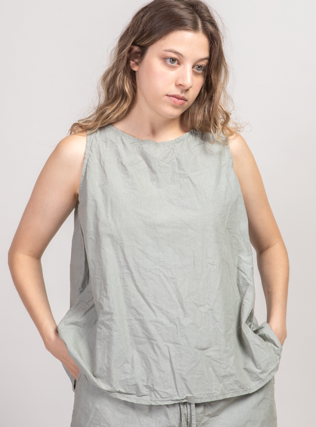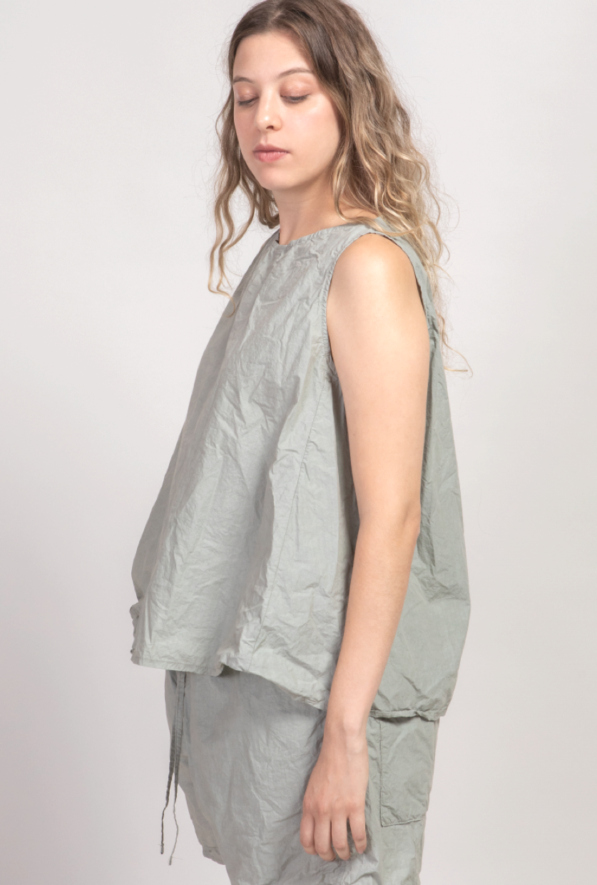Crafted from Album's signature lightweight crinkle cotton, this sleeveless top features a relaxed A-line silhouette that moves effortlessly with you. The versatile design transitions seamlessly from standalone summer wear to a layering piece for cooler seasons. Its breathable fabric and loose fit ensure comfort throughout the day, whether you're dressing it up or keeping it casual.