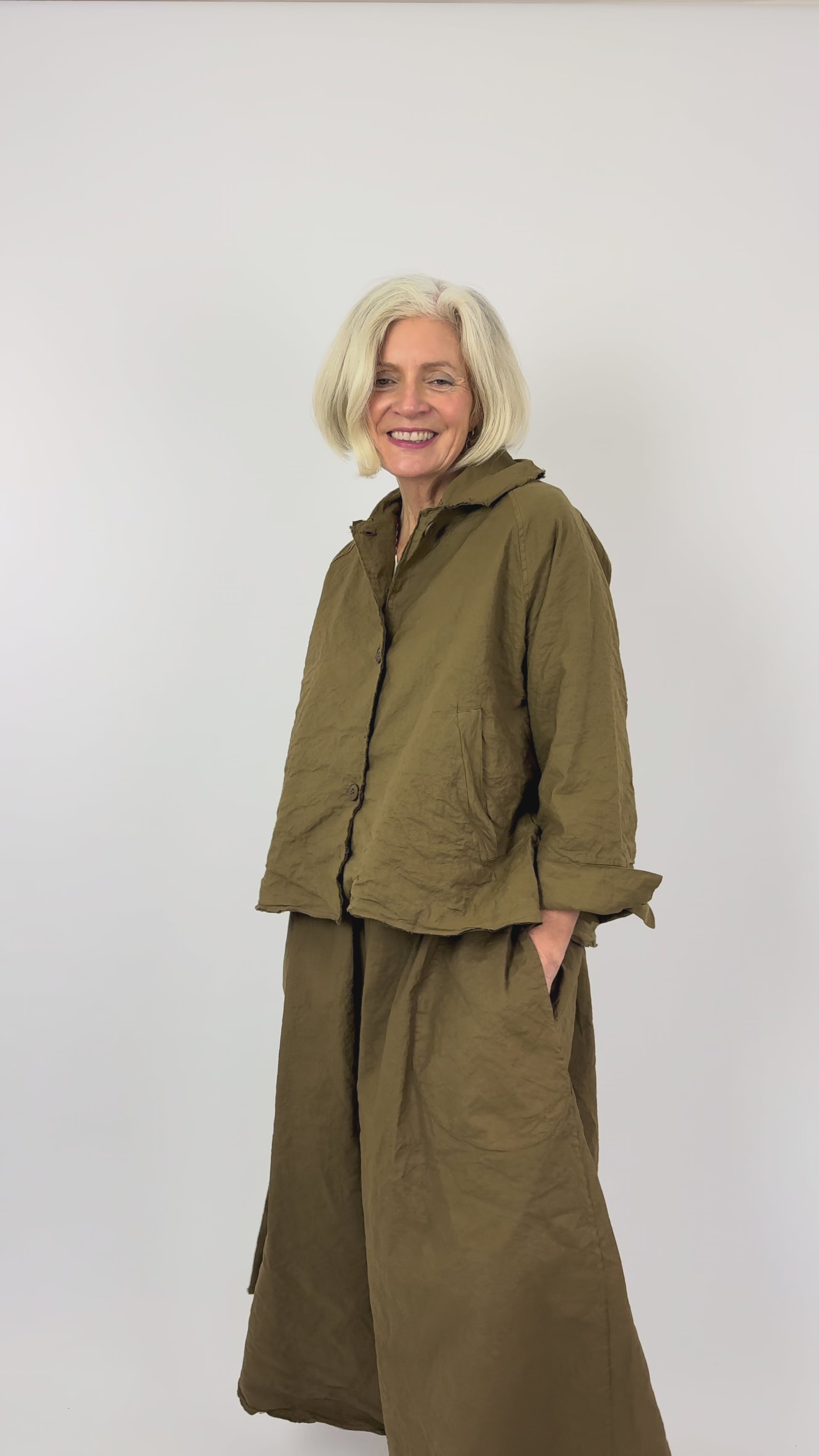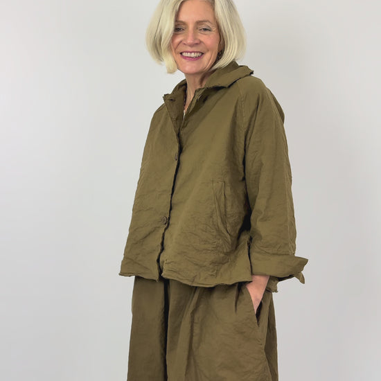 Crafted from the signature cotton-linen blend that defines this brand, the Aequamente 102 Jacket features metallic fibres woven throughout for distinctive texture and subtle crunch. The relaxed silhouette is anchored by a rounded collar with raw-edge detailing and slanted front pockets for effortless style. Raglan shoulder seams provide comfortable movement, whilst the fabric's integrated stretch ensures a refined fit that moves with you. A versatile piece that balances structure with ease.