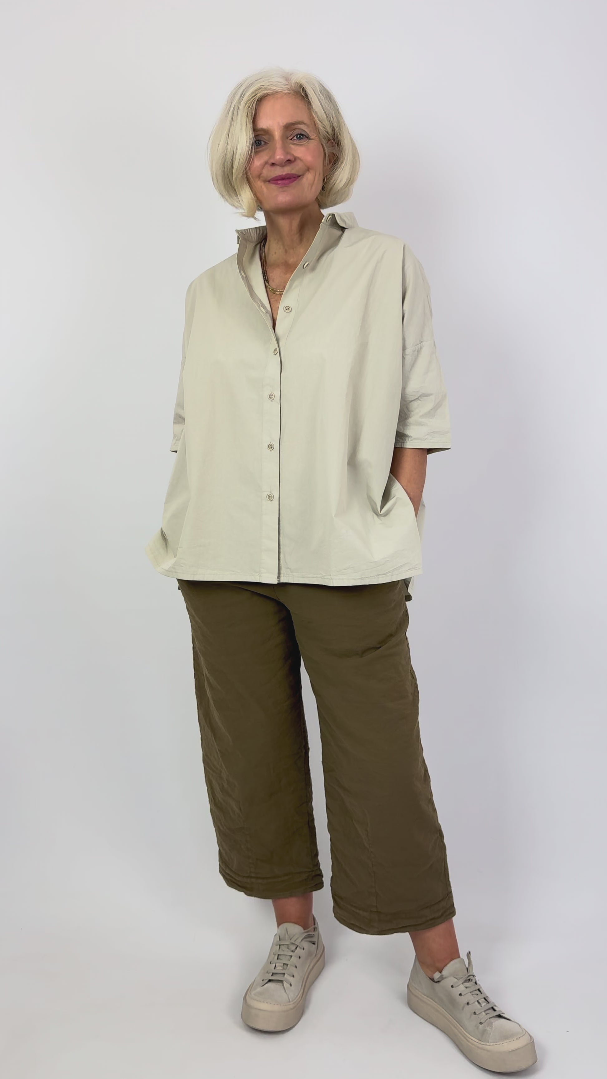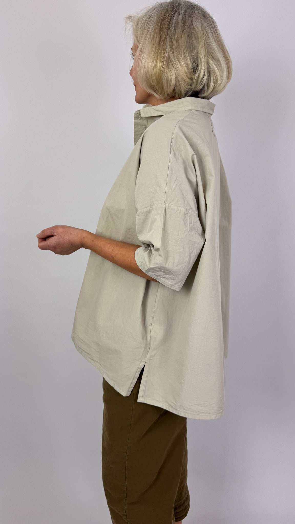 The Aequamente 149 Shirt in Sand combines understated elegance with practical design. Crafted from crisp cotton, this long-length shirt features a refined small collar and full button-down front for effortless styling. Short sleeves offer breathable comfort, while distinctive side seam splits provide subtle movement and contemporary flair. A versatile wardrobe essential that transitions seamlessly from casual to smart-casual occasions.