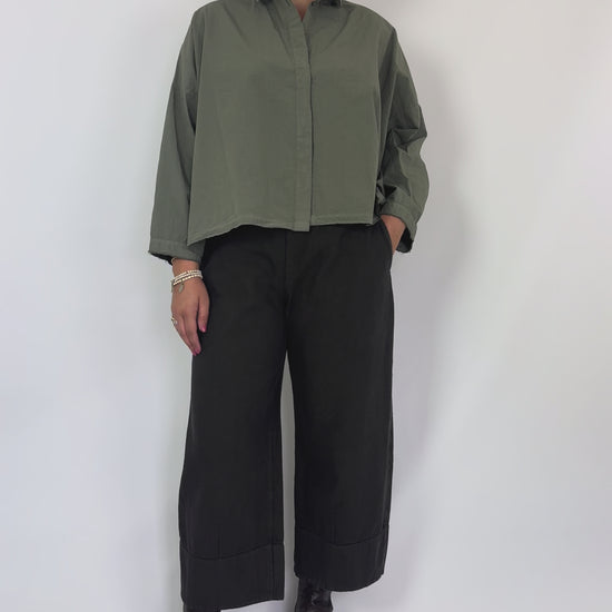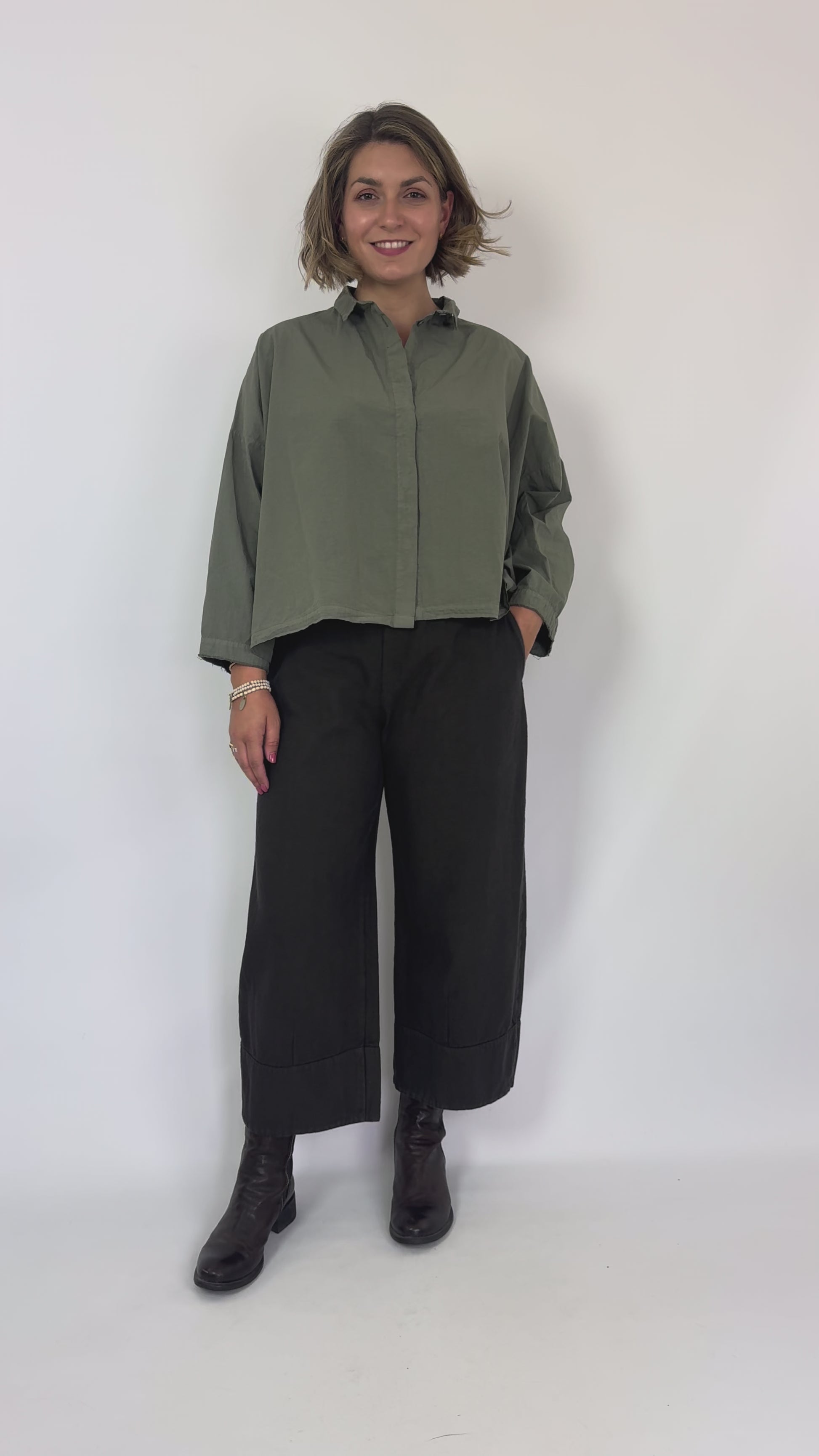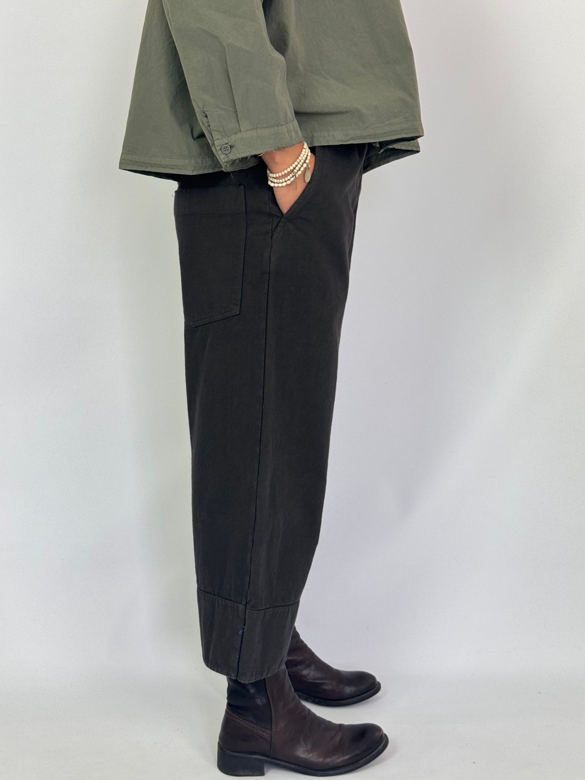 These Aequamente 235 Trousers in Foresta are crafted from thick moleskin feel cotton, offering durability and comfort. Designed with a wide, full-length silhouette that subtly curves in at the hem, they provide a flattering fit. The elasticated waistline ensures ease of wear, while side seam pockets add practical functionality. Ideal for those seeking a stylish yet comfortable trouser with expert tailoring details.