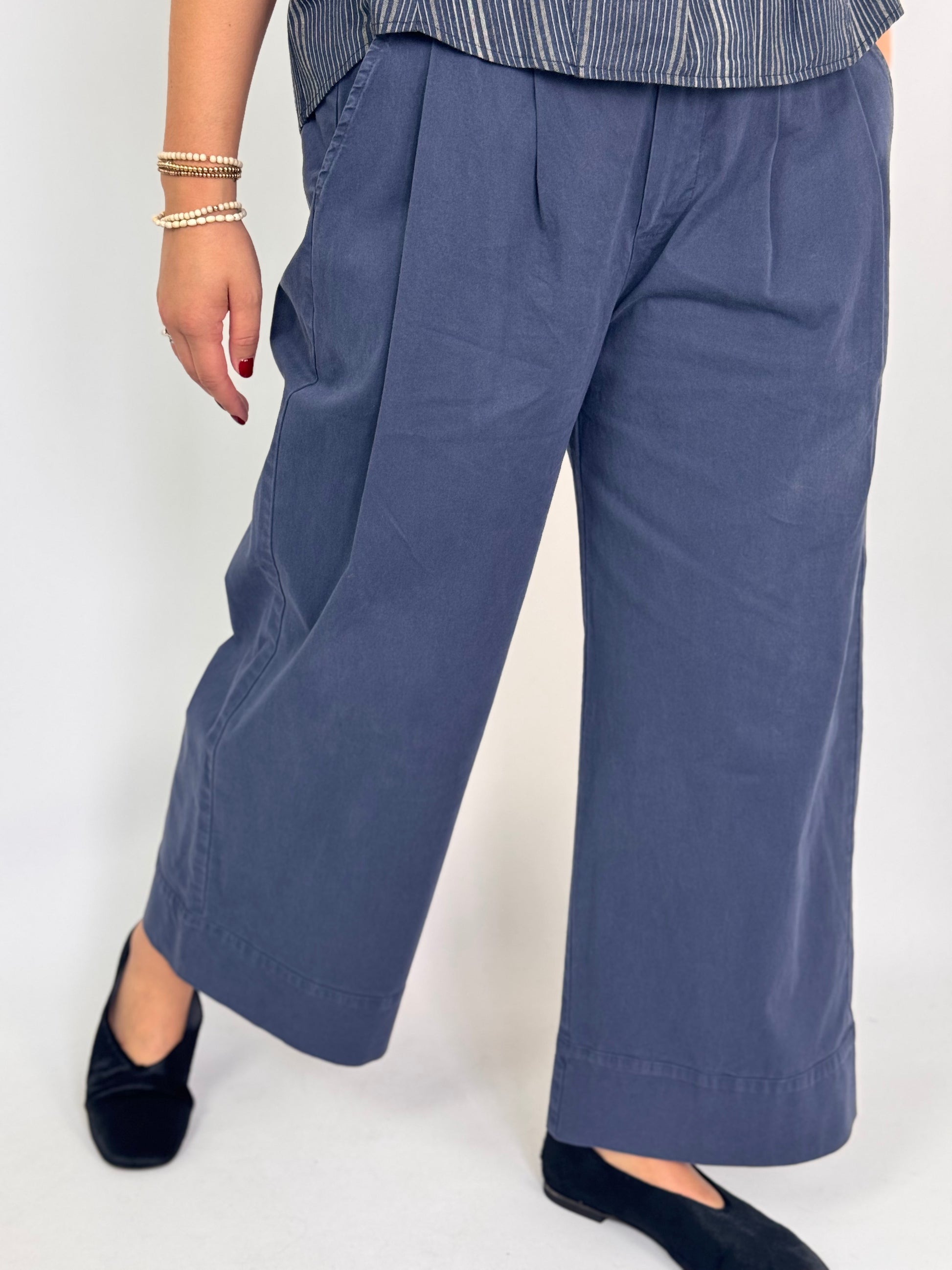 These Beatriz Furest Outside Trousers in Navy combine comfort and sophistication with their soft cotton fabric and loose straight silhouette. Designed for ease, they feature an elasticated back waistline alongside a zip and button fastening for a tailored fit. Practical side pockets add functionality, making these trousers a smart choice for effortless, polished dressing.