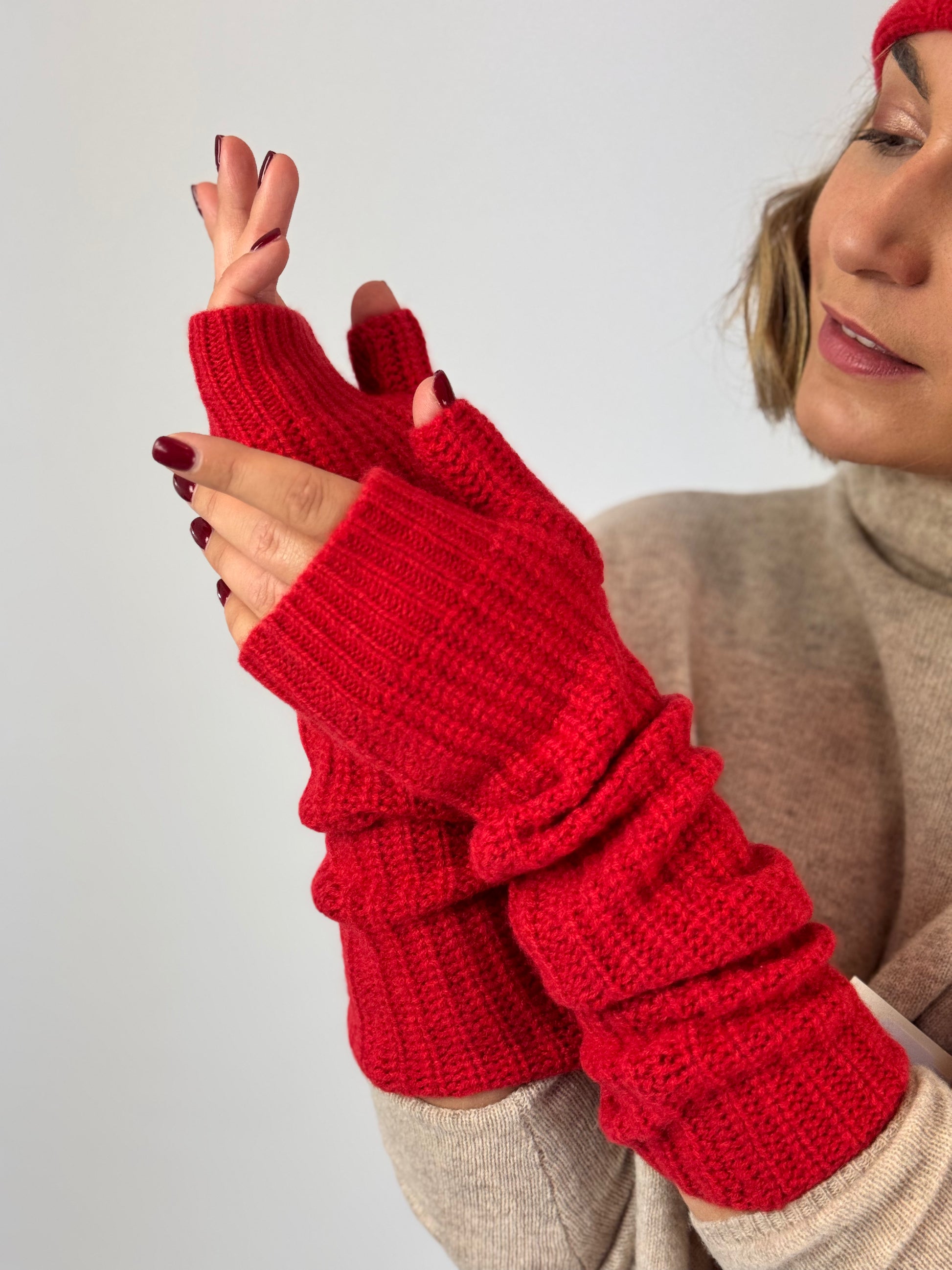 These Cash-Ca A503 Mitts in Crimson feature a chunky ribbed design and fingerless style, crafted from a luxurious blend of yak and wool. Their extended length provides extra warmth for your wrists, making them ideal for chilly conditions while allowing full finger mobility. Perfect for those seeking both comfort and functionality in cold weather accessories.