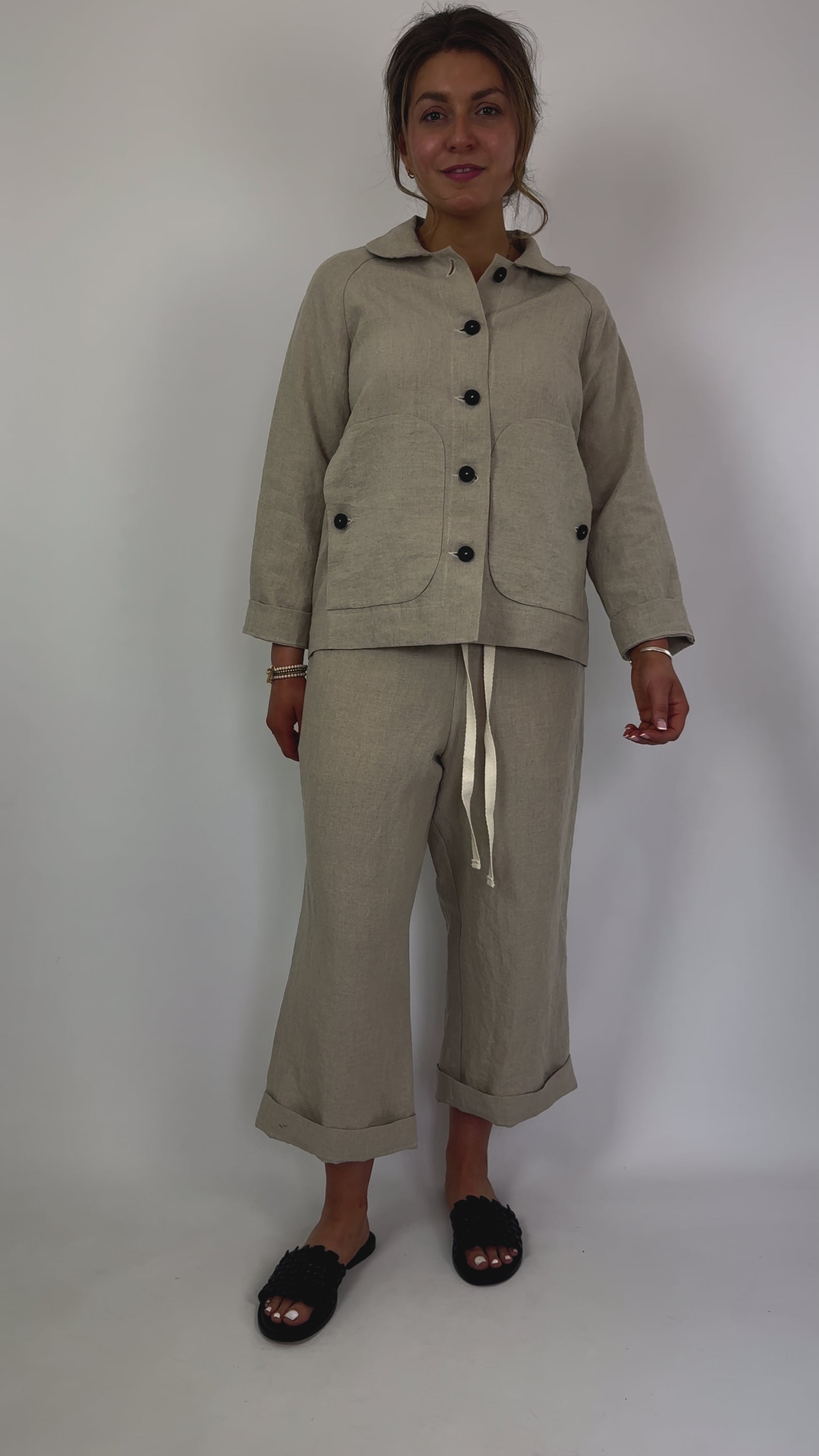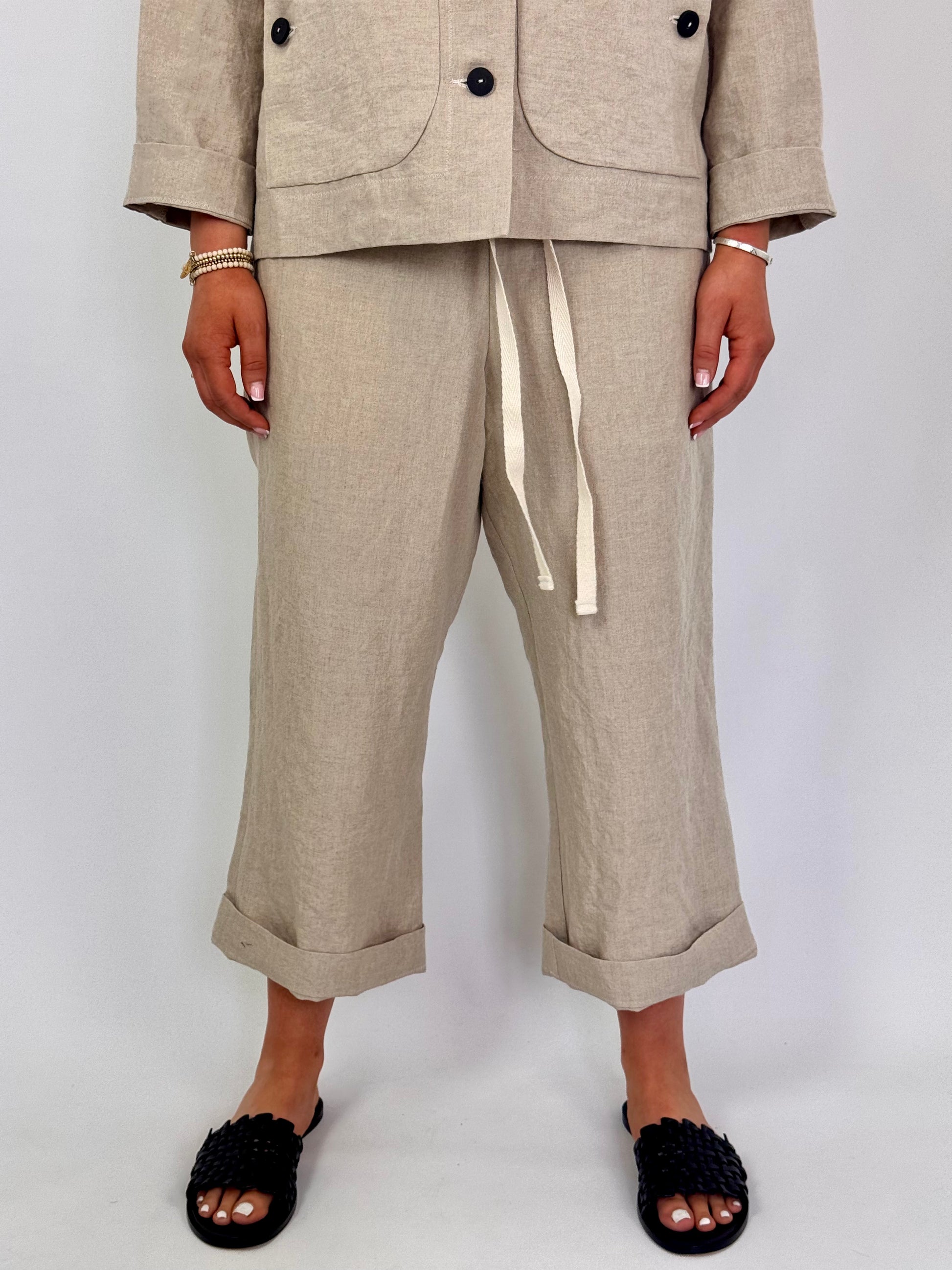 Expertly handcrafted from high-quality linen, the Der Antagonist P20 Trousers are designed with a drawstring waistline for a customised fit. These trousers also feature rounded pockets and a flattering turned-up hem, all in a natural ecru colour. Perfect for any occasion, these trousers are a must-have addition to your wardrobe.