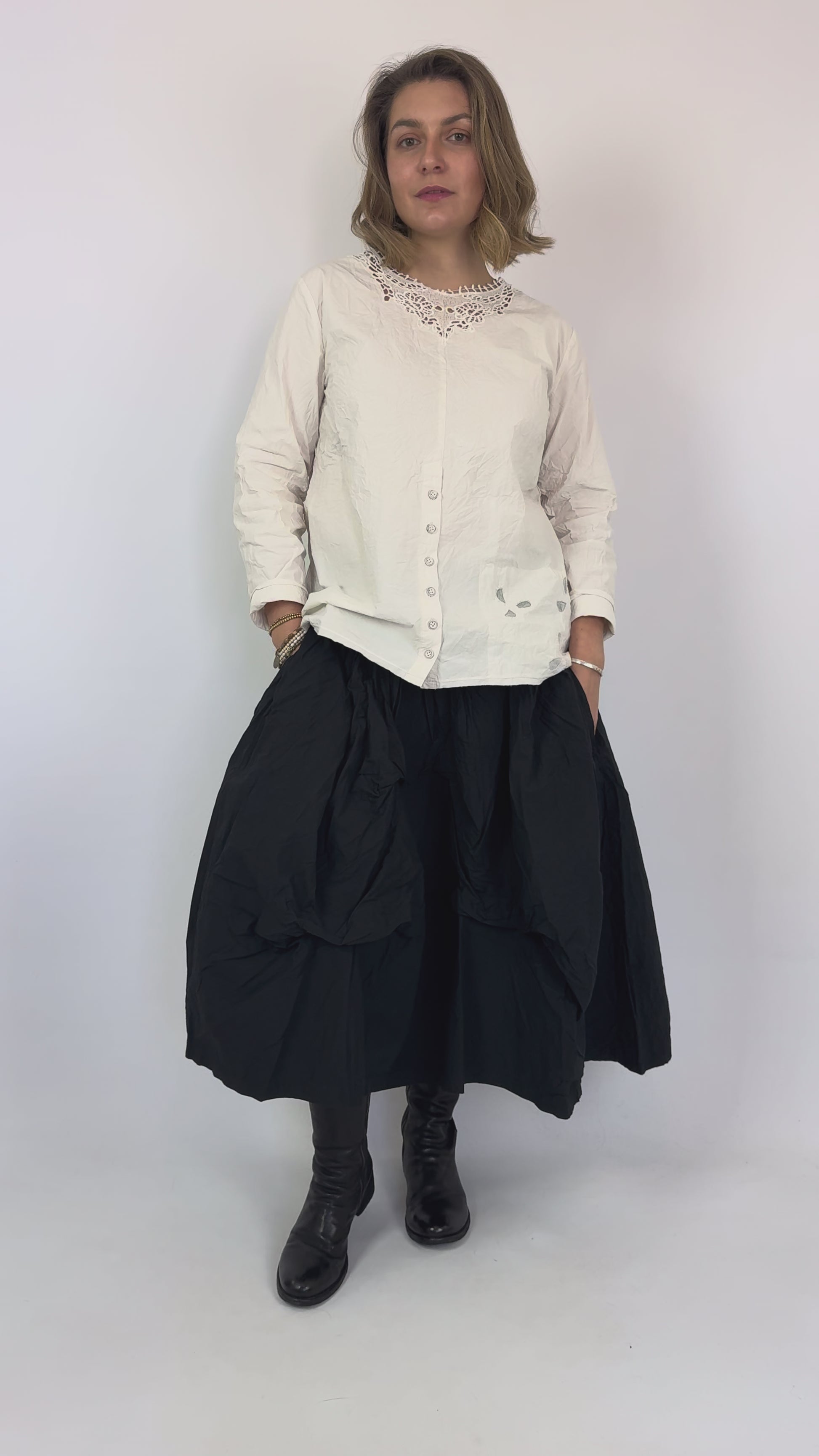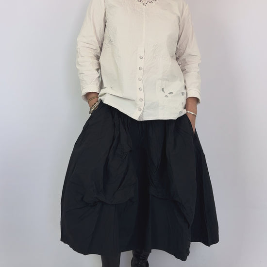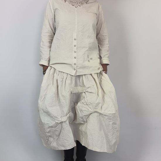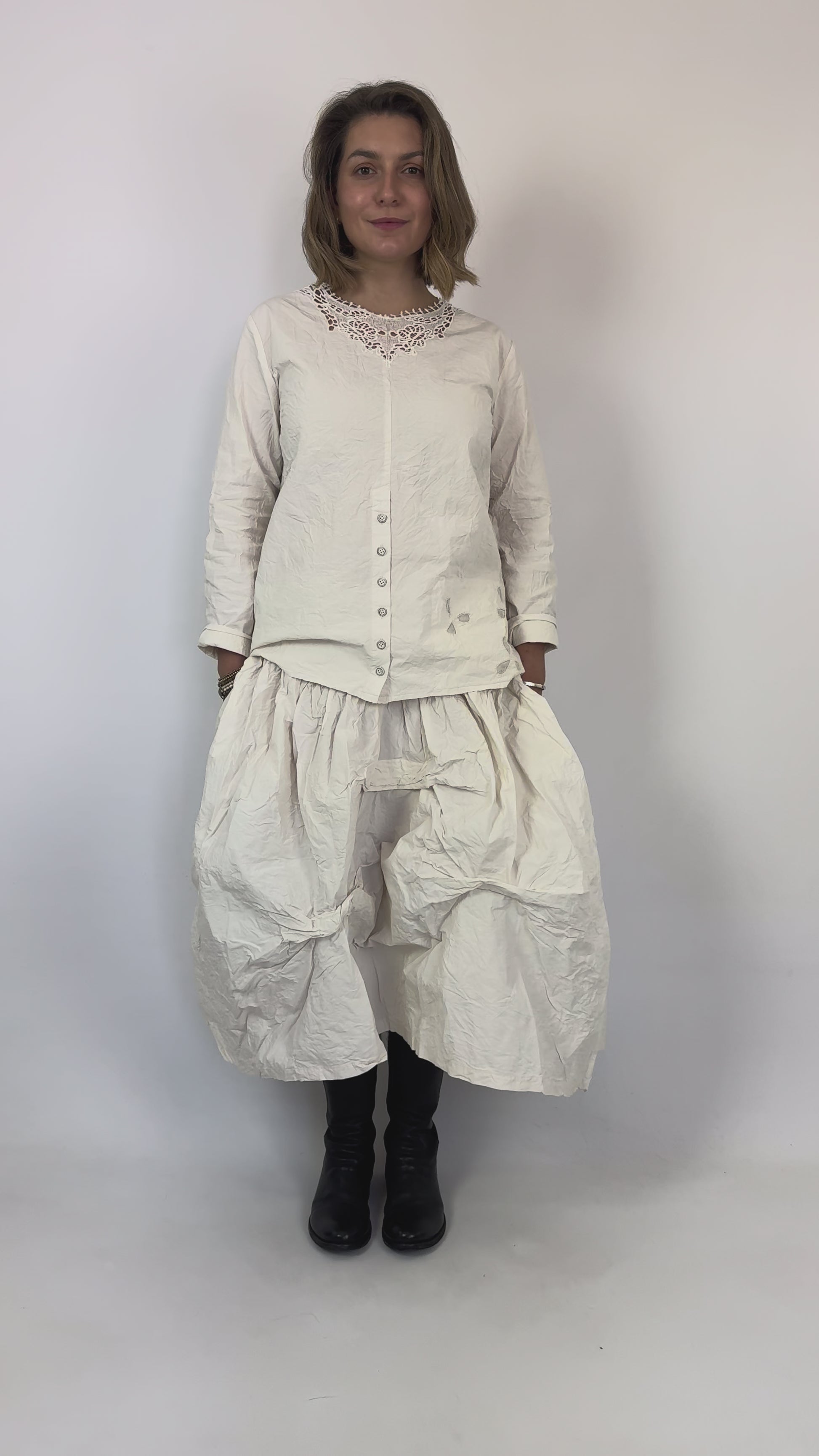 The Ewa i Walla Ingbritt Skirt is crafted from organic cotton, featuring two tucks at the front to add interest. A smocked waist ensures a comfortable, flattering fit while adding subtle volume through its natural wrinkling effect. Practical belt loops and discreet side seam pockets combine style with functionality, making this skirt a versatile and refined addition to your wardrobe.