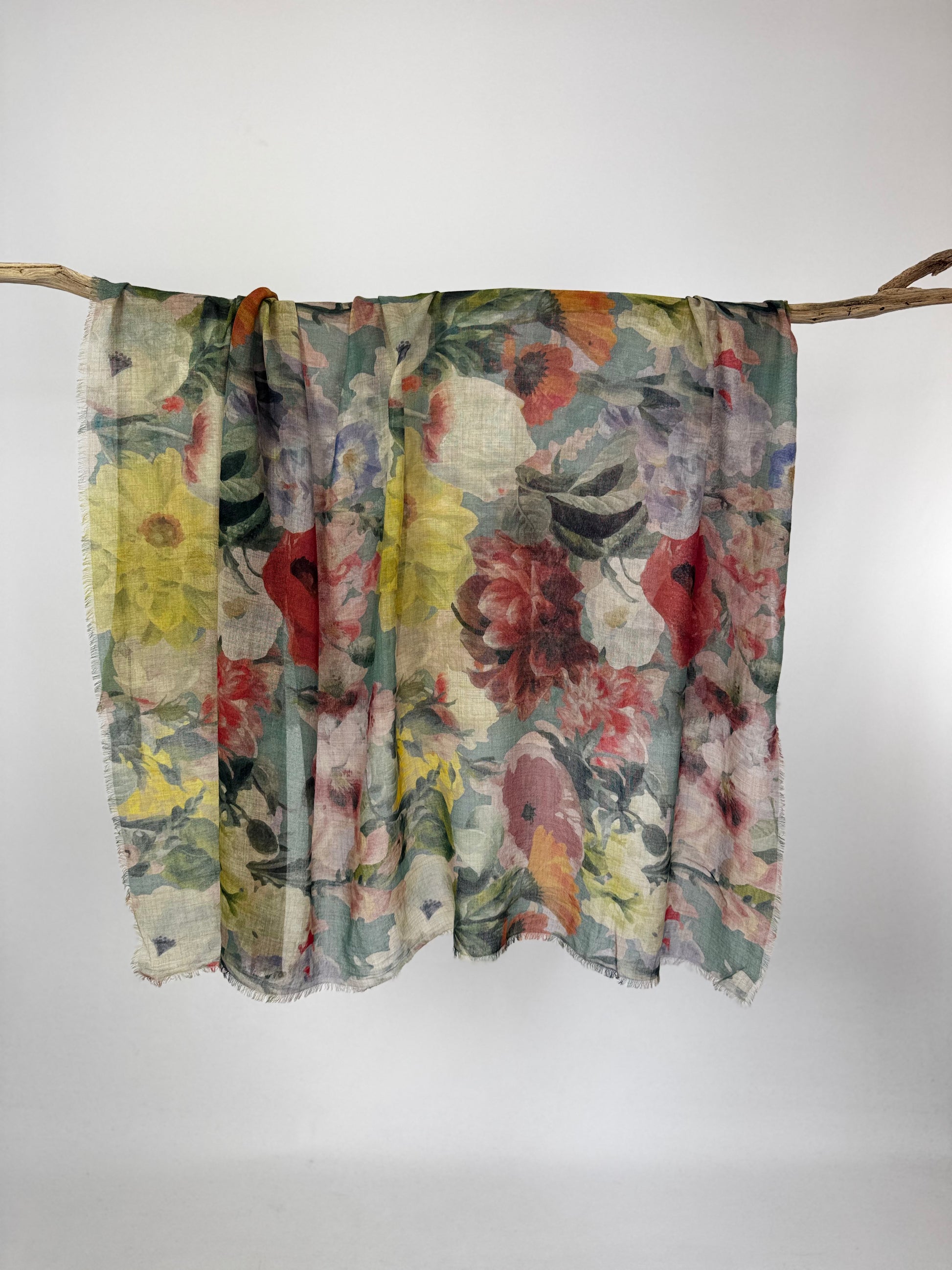 Experience refined elegance with the Gaynor Bongard Noemi Scarf Multi. Crafted from a luxurious blend of wool and silk, this scarf offers exceptional softness and warmth. Its multi-coloured floral print adds a sophisticated splash of colour, while the raw frayed edges provide a contemporary, artisanal finish. Ideal for elevating both casual and formal ensembles, this scarf combines comfort with expert craftsmanship.