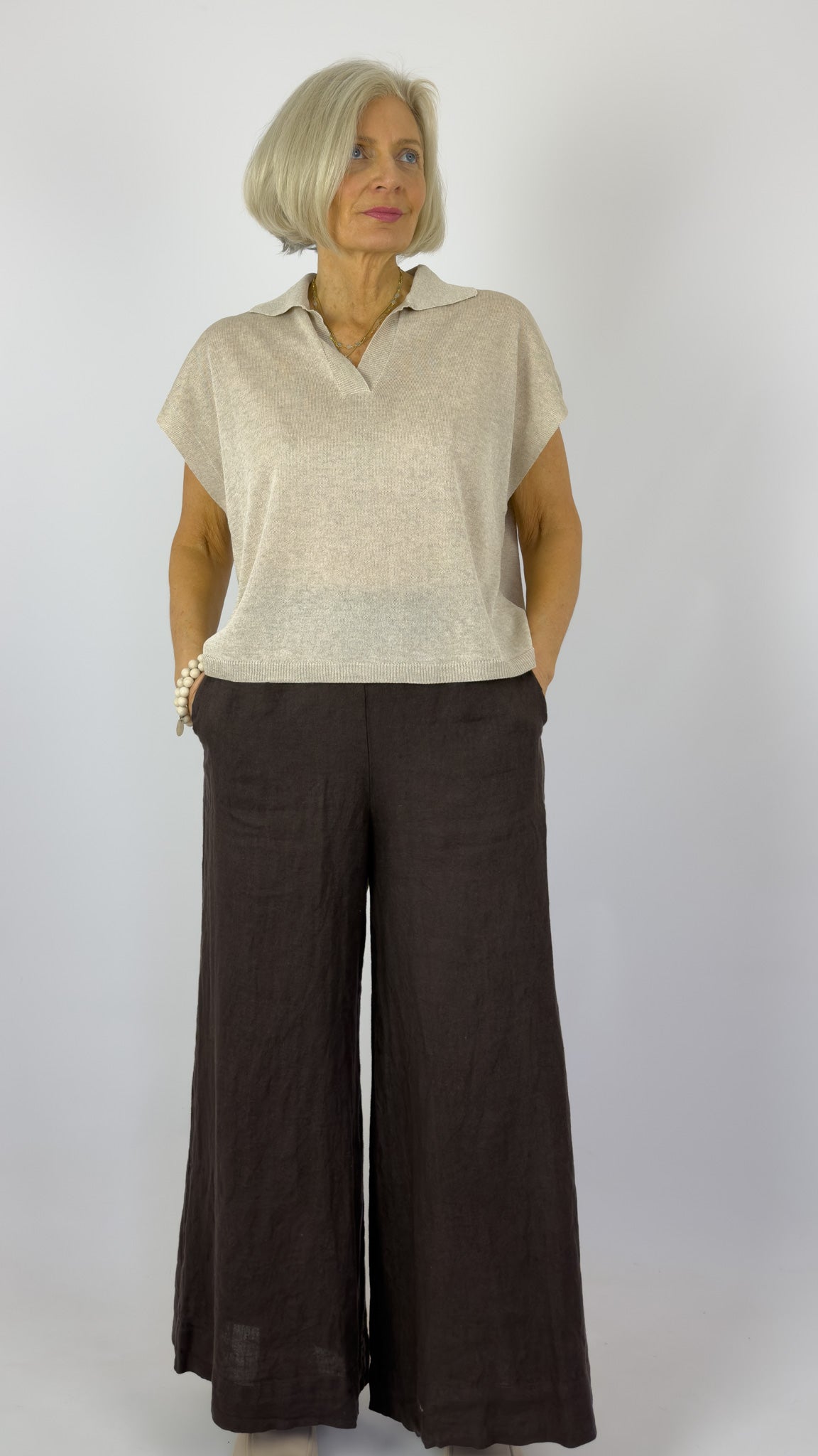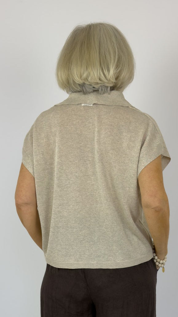Crafted from fine, flowing knit, this sleeveless polo delivers understated elegance with a straight silhouette and open collar design. Cap sleeves provide subtle definition, while ribbed trims at the collar and hem ensure a refined, structured finish. An essential layering piece that transitions effortlessly from casual to polished occasions.