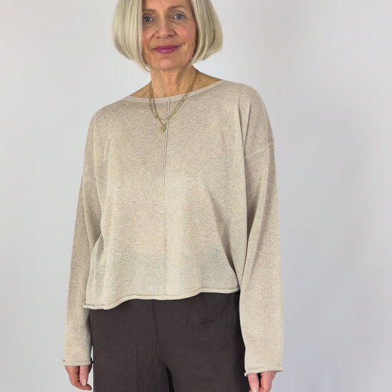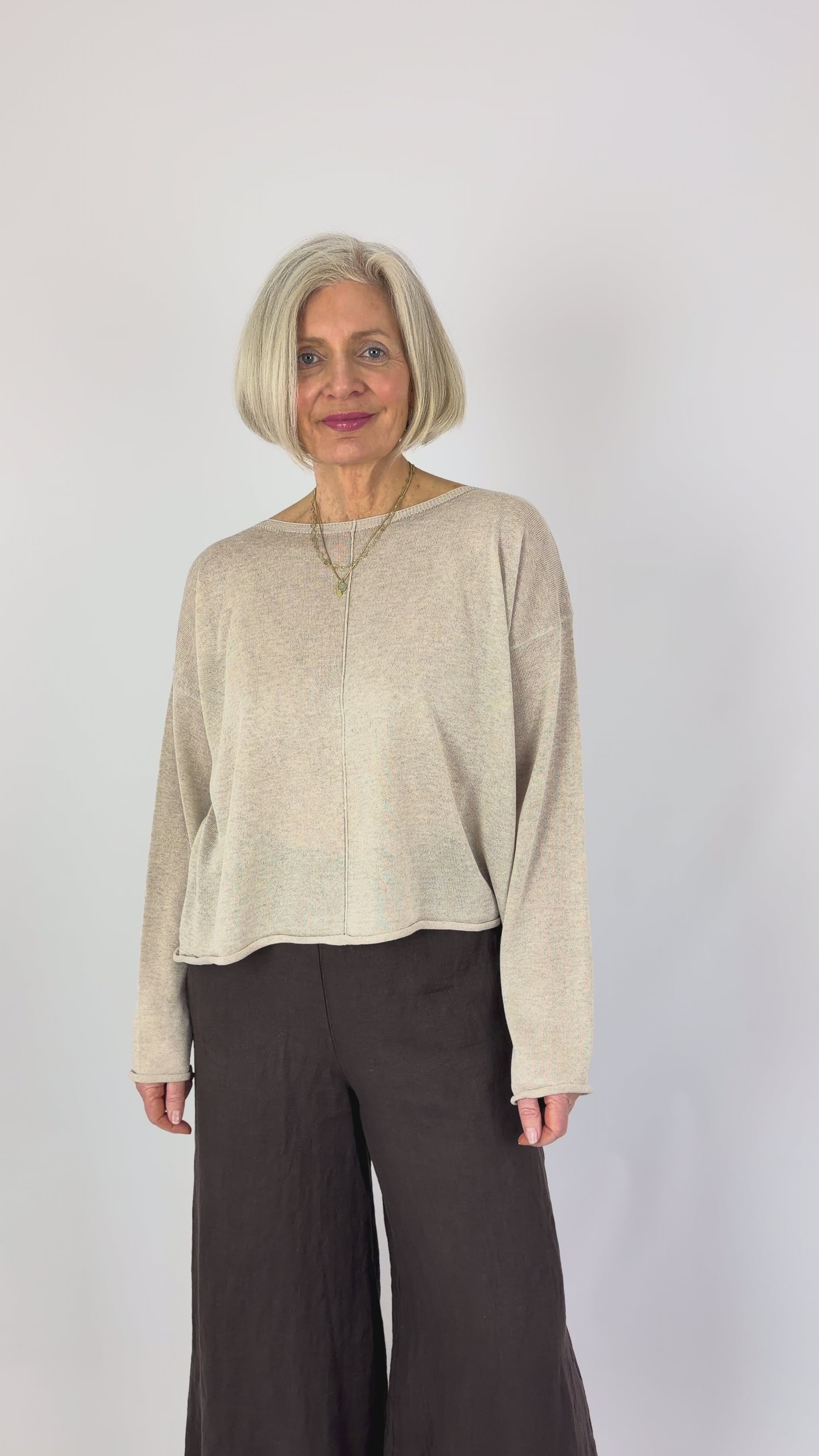 The Humility Lison Jumper combines understated elegance with thoughtful design details. Crafted from fine, flowing knit, this loose pullover features a gently boat-shaped neckline and generously proportioned silhouette that moves with ease. Dropped armholes and long sleeves create a relaxed, contemporary fit, while a distinctive vertical seam at the centre front adds subtle visual interest. A functional button placket with slit at the back provides practical layering versatility. Perfect for effortless, refined everyday wear.