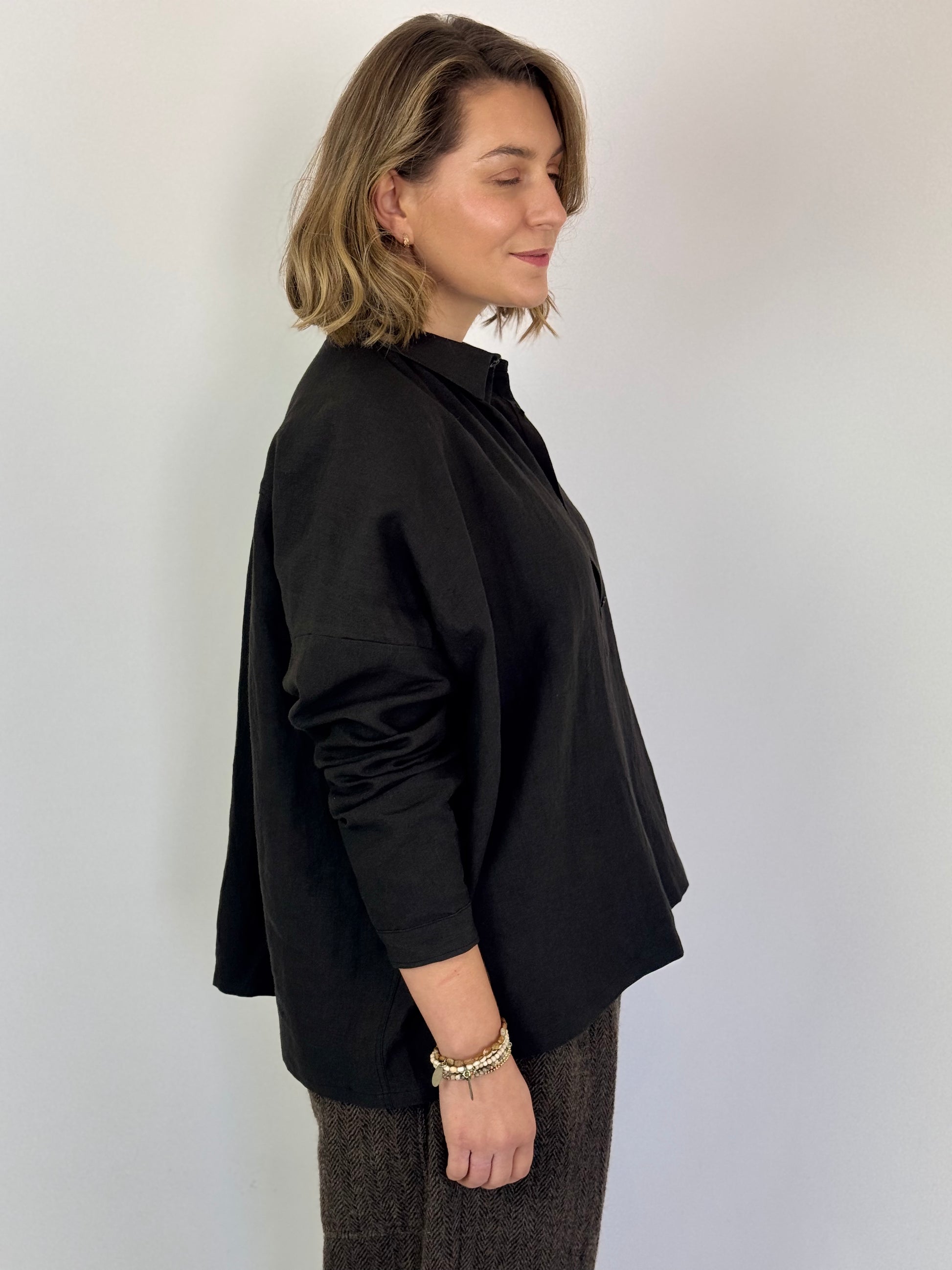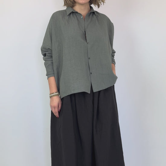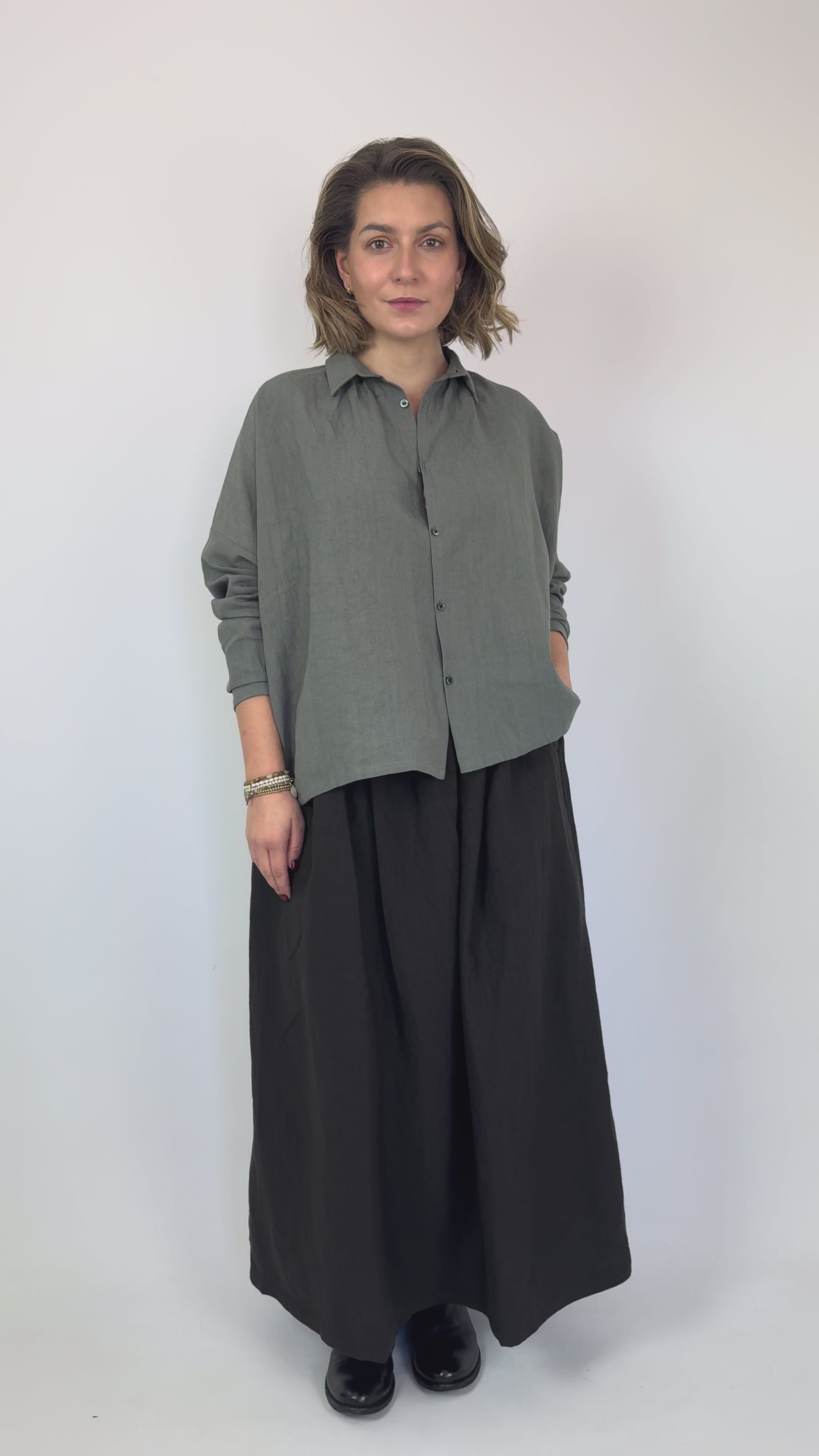 The Ichi Antiquities 301 Shirt offers a relaxed silhouette with its loose fit and dropped shoulders, ensuring comfortable wear throughout the day. Crafted from breathable linen, it features a classic button front and collar for a timeless appeal. Thoughtfully designed details include button cuffs and a gathered seam at the back, adding subtle structure and ease of movement to this versatile wardrobe staple.