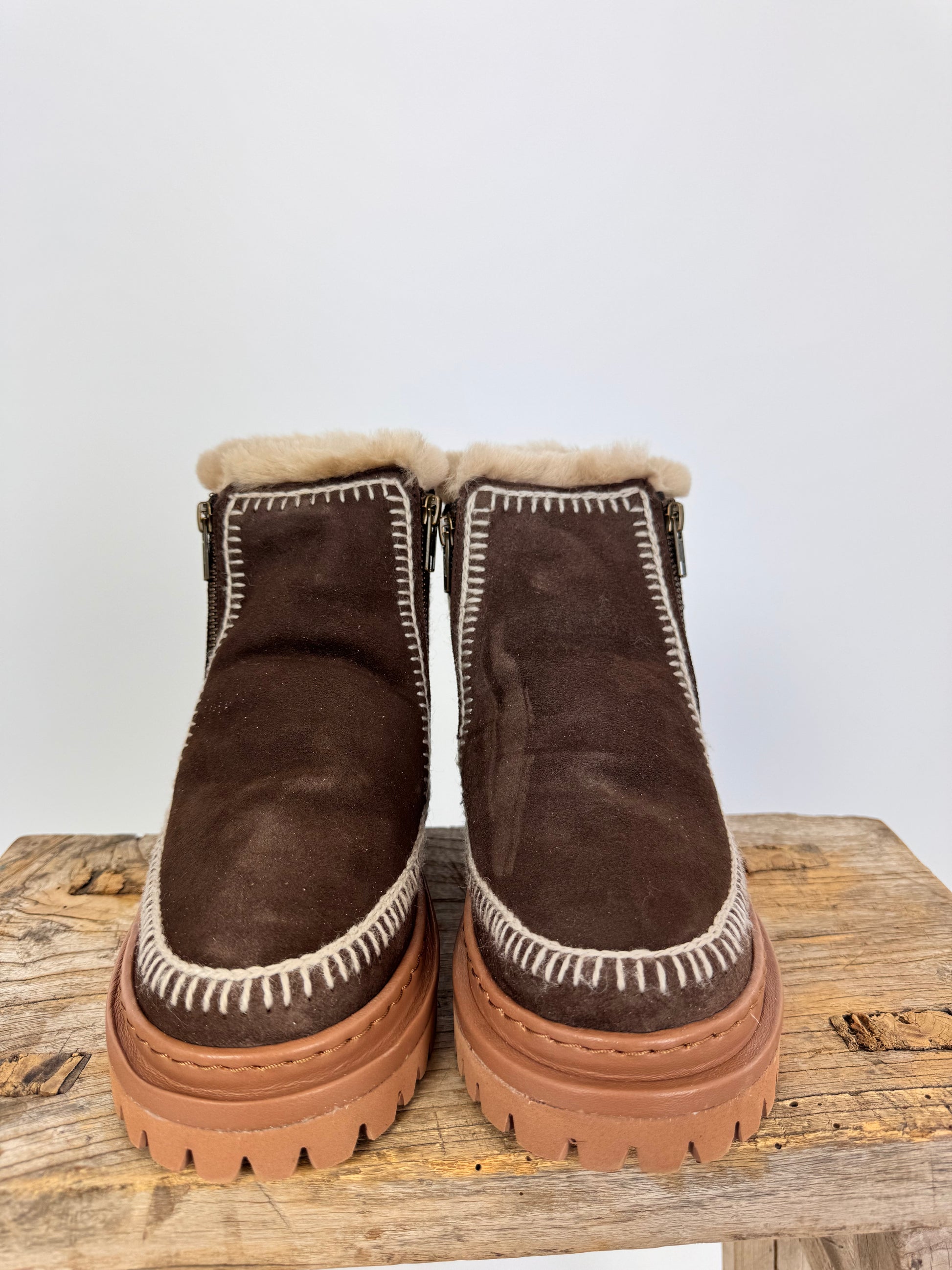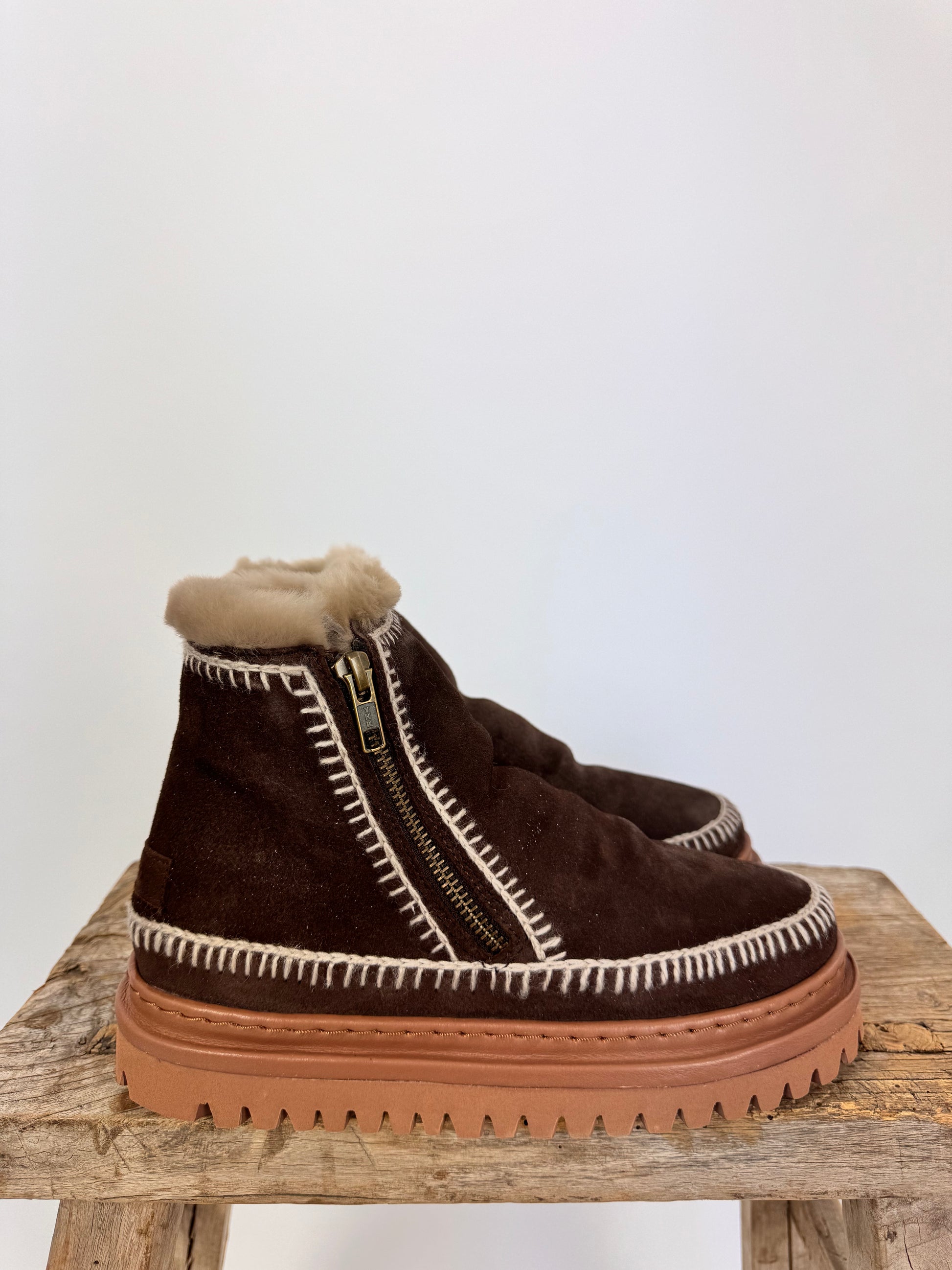 Composition: Outer: 100% Goat suede, Lining: 100% Shearling, Sole: 100% Rubber