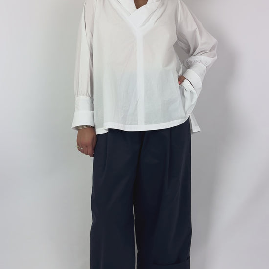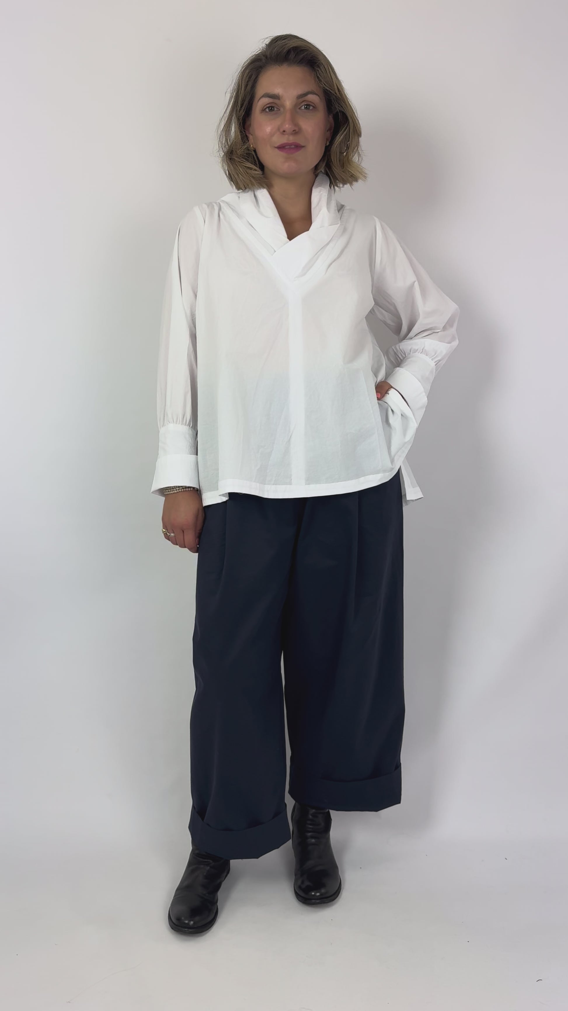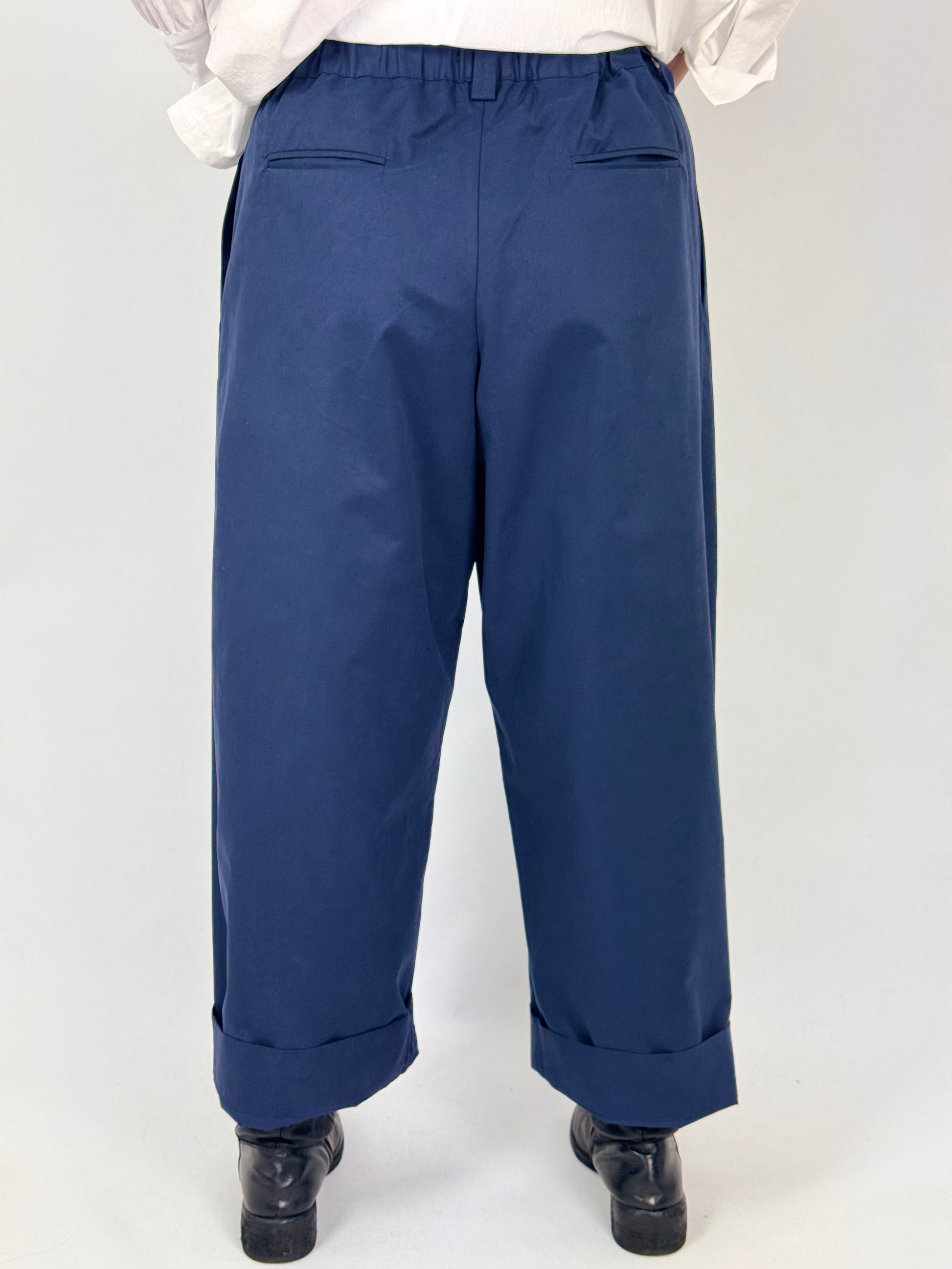 These Les Filles d'Ailleurs 366 Trousers in Navy feature a wide, loose silhouette paired with an elasticated waistline for comfort and ease of movement. Crafted from a soft cotton mix, they offer breathable wear while maintaining a relaxed, effortlessly stylish look ideal for both casual and elevated occasions.
