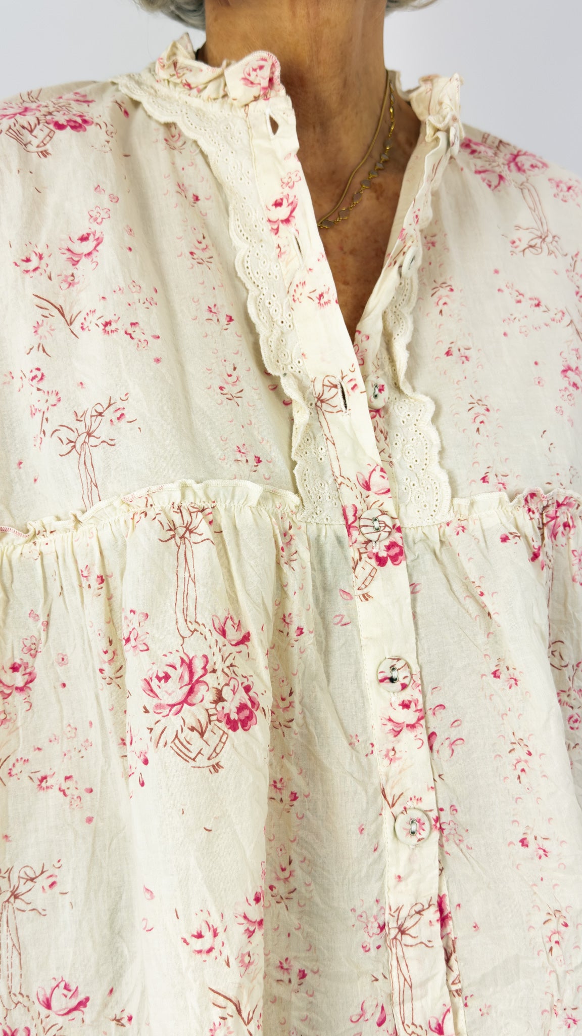 Discover effortless elegance with the Les Ours Carvi Jacket in Liberty print. Crafted from lightweight cotton, this bohemian-inspired piece combines relaxed tailoring with thoughtful design details. The ruffled collar and long buttoned sleeves deliver a refined, feminine aesthetic, whilst fabric-covered buttons ensure a cohesive finish. Perfect for layering through summer or transitioning into autumn, this jacket brings romantic charm to any wardrobe with its versatile neutral tone and understated sophistication.