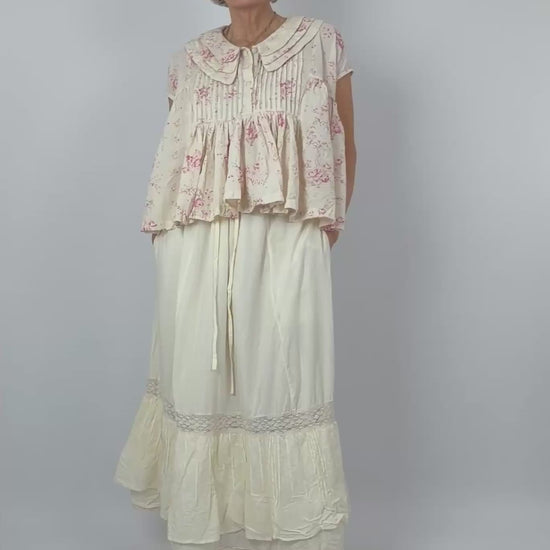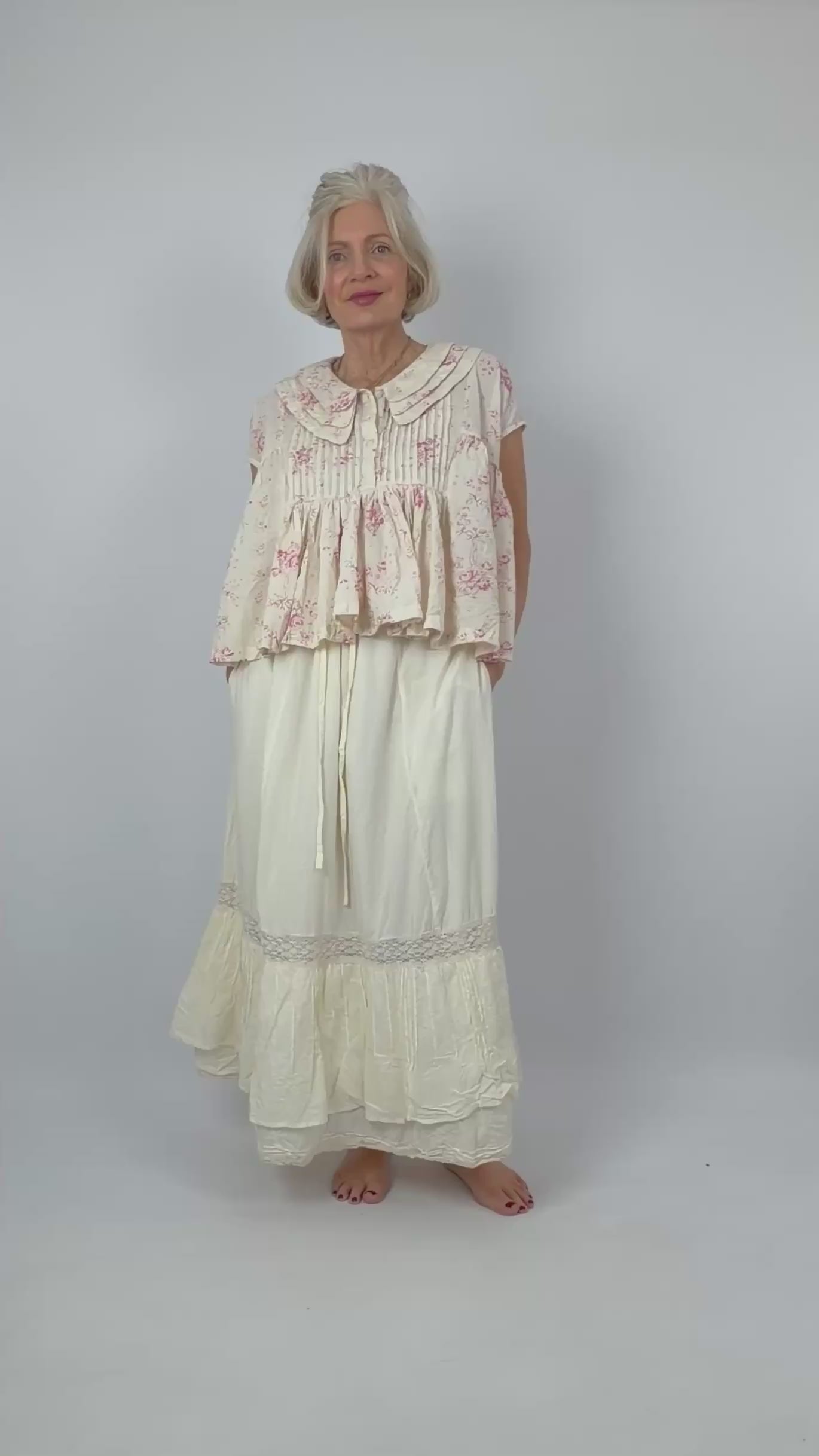 The Chicka skirt embodies vintage-inspired sophistication with contemporary practicality. Crafted from fluid, lightweight fabric and fully lined in cotton voile, it delivers effortless drape and breathable comfort. An adjustable drawstring waist flatters your silhouette whilst maintaining freedom of movement. Pleated detailing and delicate cotton lace trim evoke romantic, handcrafted elegance, whilst two concealed interior pockets provide functional refinement. A versatile piece that transitions seamlessly from day to evening wear.