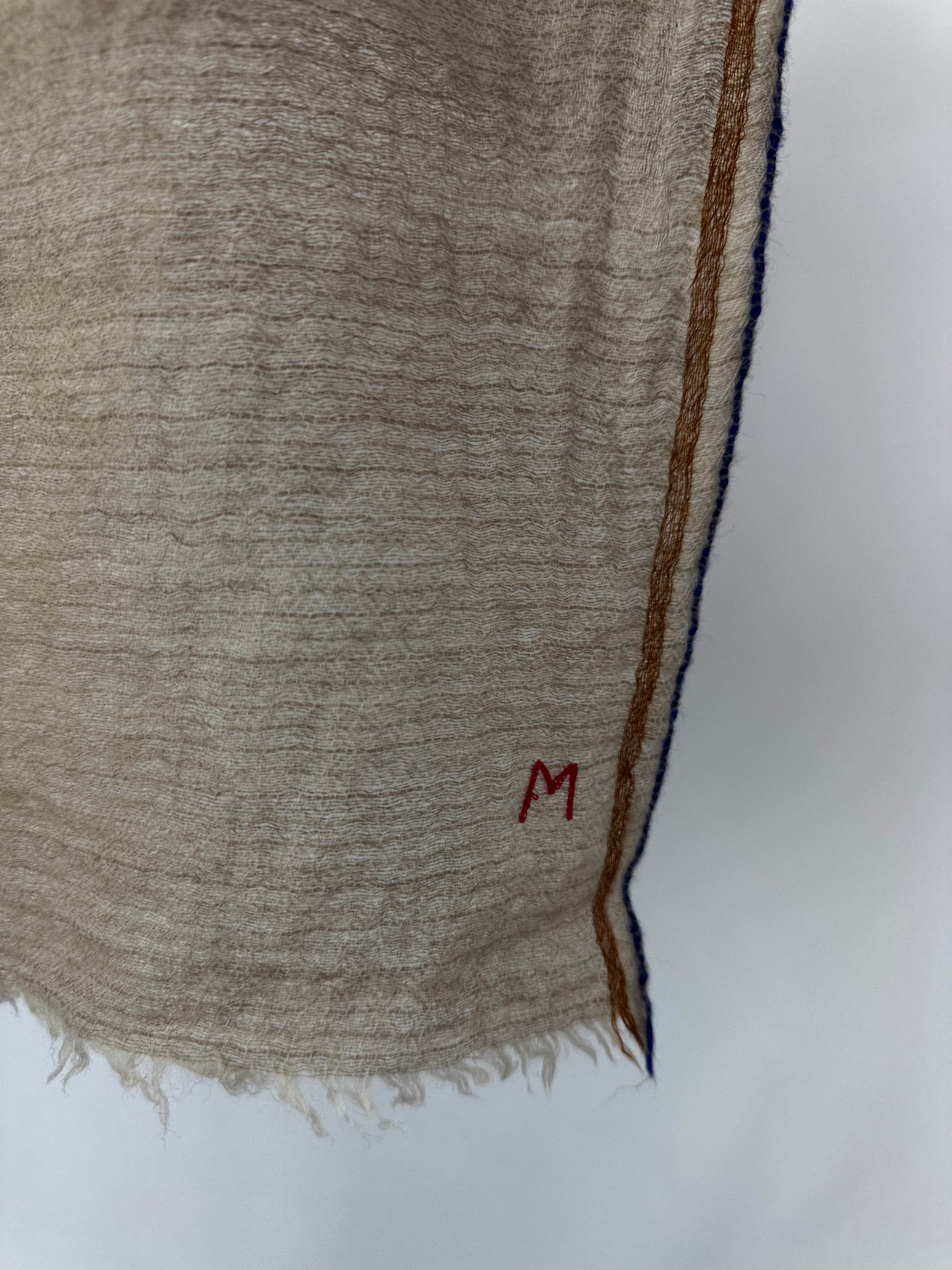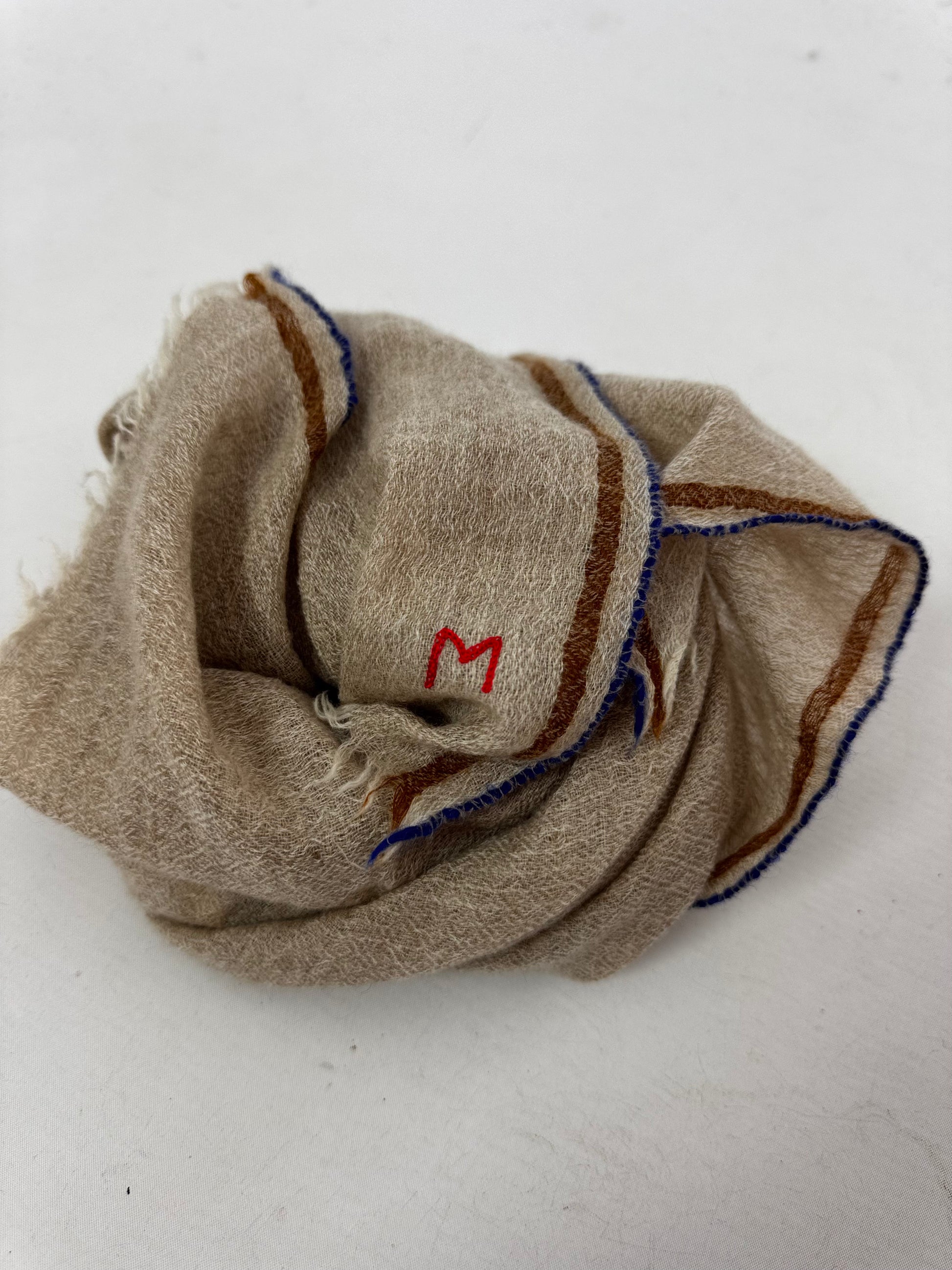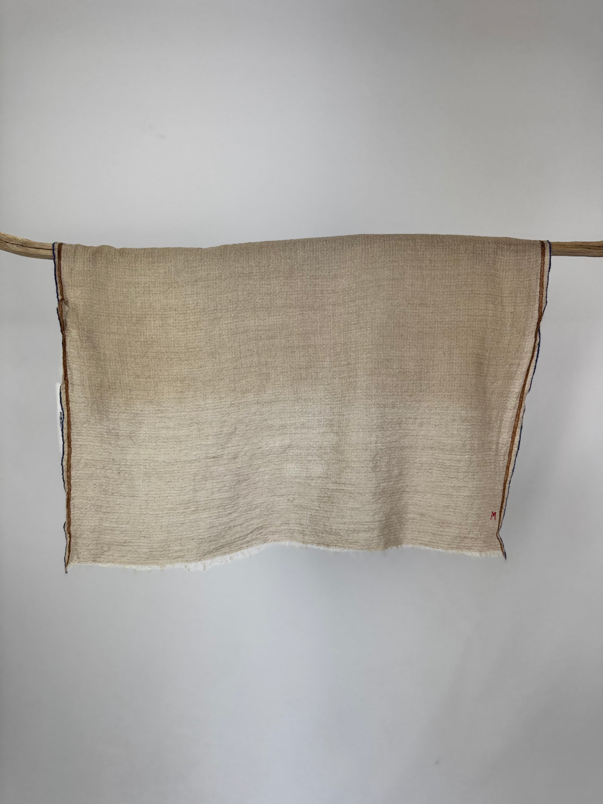The Moismont 792 Scarf Clay exemplifies refined simplicity through its hand-woven blend of cashmere and wool, offering exceptional softness, warmth, and lightness. Its versatile 65 x 65 cm square design adapts effortlessly—worn around the neck, in the hair, or as a chic bag accessory. Featuring a subtle graphic effect with a fine contrasting border and the discreet "M" embroidery, this scarf embodies the understated elegance characteristic of the Moismont clan.