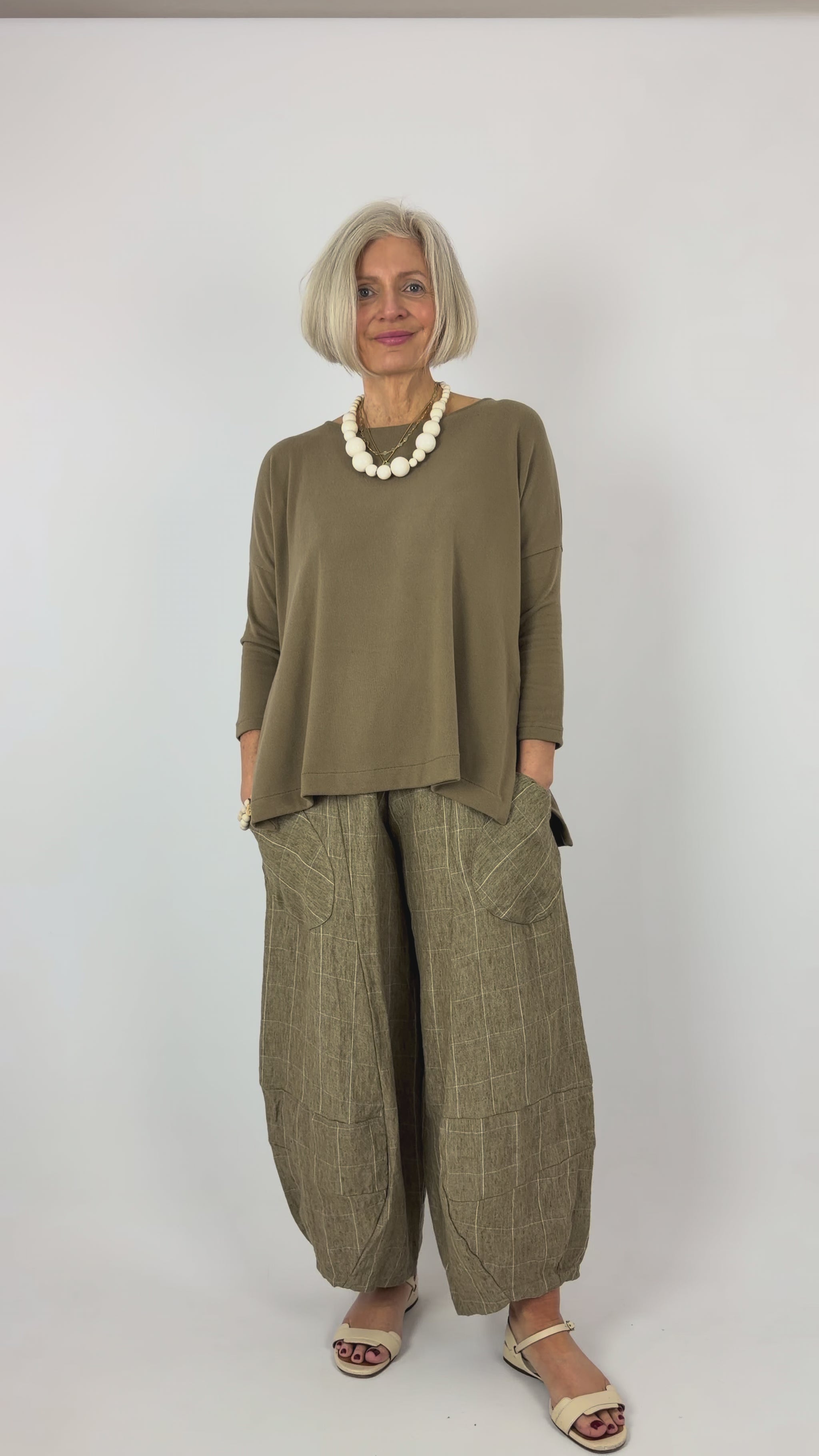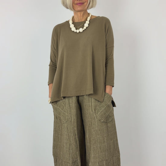 The Mama b Emotiva Jumper in Cumin combines effortless elegance with everyday comfort. Crafted from soft fabric, this relaxed silhouette features a generous wide cut with extended length at the back for modern proportion. The round neckline and drop shoulders create a laid-back aesthetic that works beautifully layered or worn solo. Perfect for those seeking understated style without compromising on wearability.