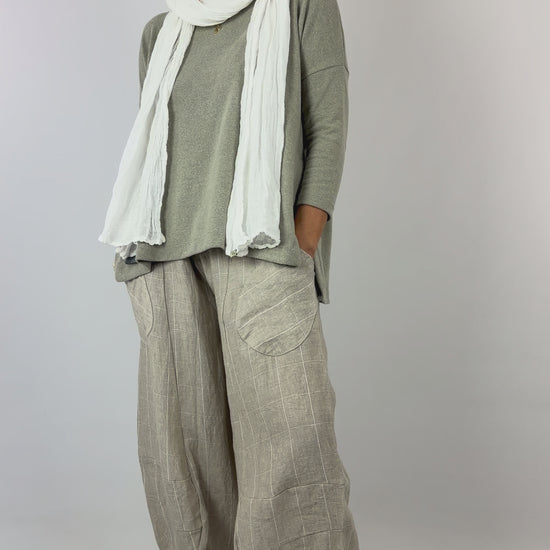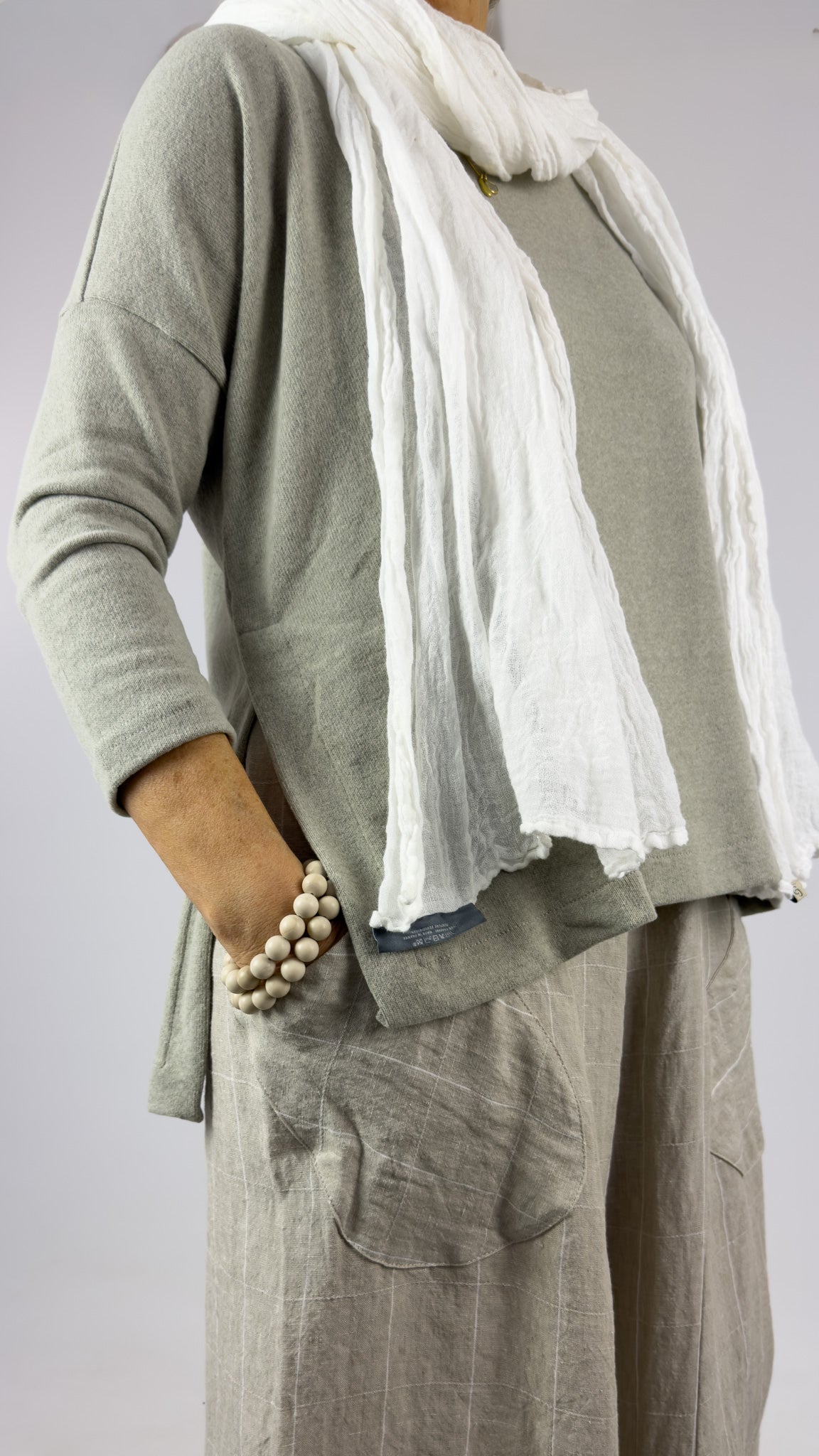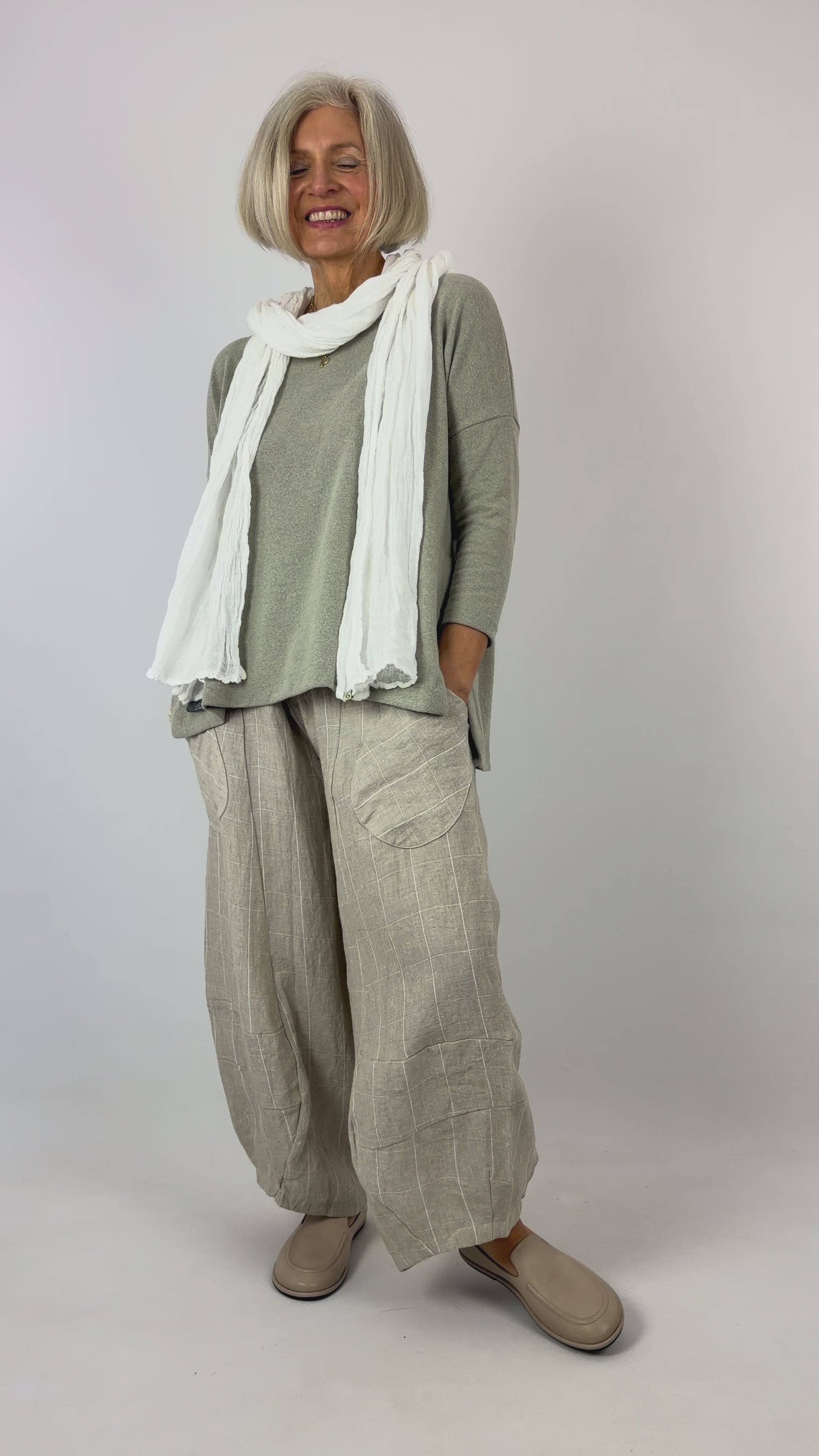 The Mama b Emotiva Jumper in Lichene combines effortless elegance with everyday comfort. Crafted from soft fabric, this relaxed silhouette features a generous wide cut with extended length at the back for modern proportion. The round neckline and drop shoulders create a laid-back aesthetic that works beautifully layered or worn solo. Perfect for those seeking understated style without compromising on wearability.