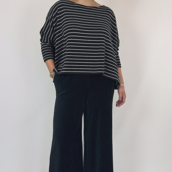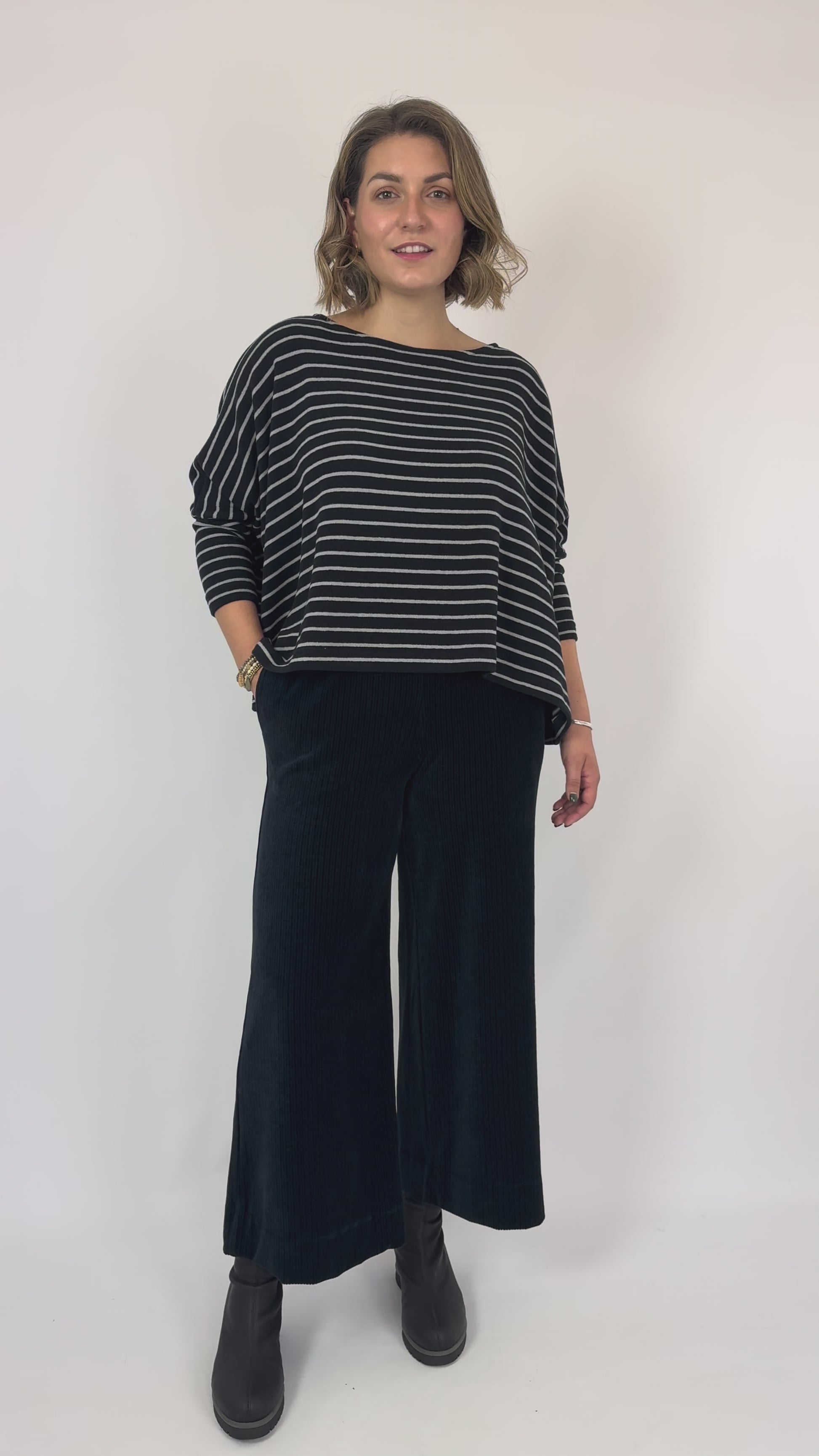 Experience effortless comfort with the Mama b Pollo Trousers Notte, crafted from soft, floppy cotton corduroy for a luxurious feel. Their wide-leg design offers a relaxed silhouette, while the elasticated waistline ensures a perfect fit and ease of wear throughout the day. Ideal for those who value both style and comfort in their wardrobe essentials.