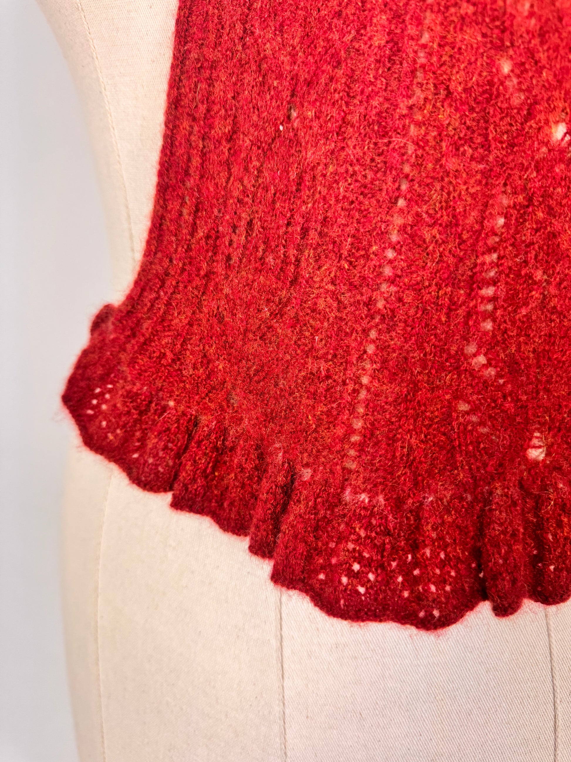 Elevate your accessory collection with this exquisite knitted scarf, crafted from sumptuous cashmere for unparalleled softness and warmth. Featuring a sophisticated reversible design, one side showcases a light brown whilst the other reveals a vibrant red enriched with subtle orange undertones that add visual complexity and dimension. Delicate frill edges provide an elegant finishing touch, making this small scarf a versatile layering piece perfect for both casual and refined occasions. Its refined construction and thoughtful colour palette ensure it complements a wide range of wardrobes with understated luxury.