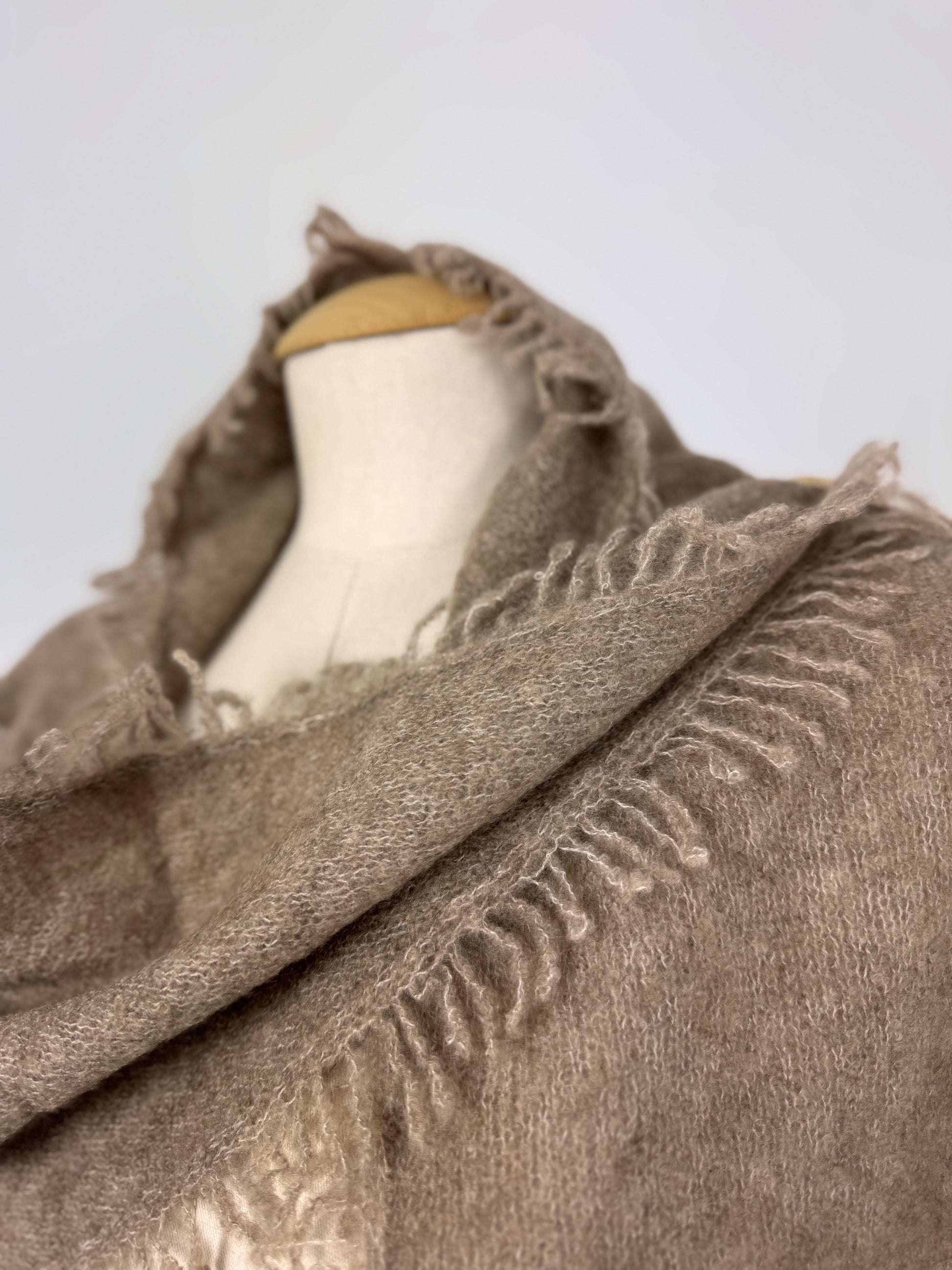 Crafted from lightweight cashmere, this triangle scarf offers versatile styling for any occasion. The tasseled edges add refined detail while the cut allows you to wear it multiple ways—drape it elegantly over your shoulders as a shawl or wrap it around your neck for classic scarf styling. The soft, breathable fabric makes it ideal for layering without bulk, while the warm light brown tone complements a range of wardrobes. A timeless piece that transitions effortlessly from day to evening wear.