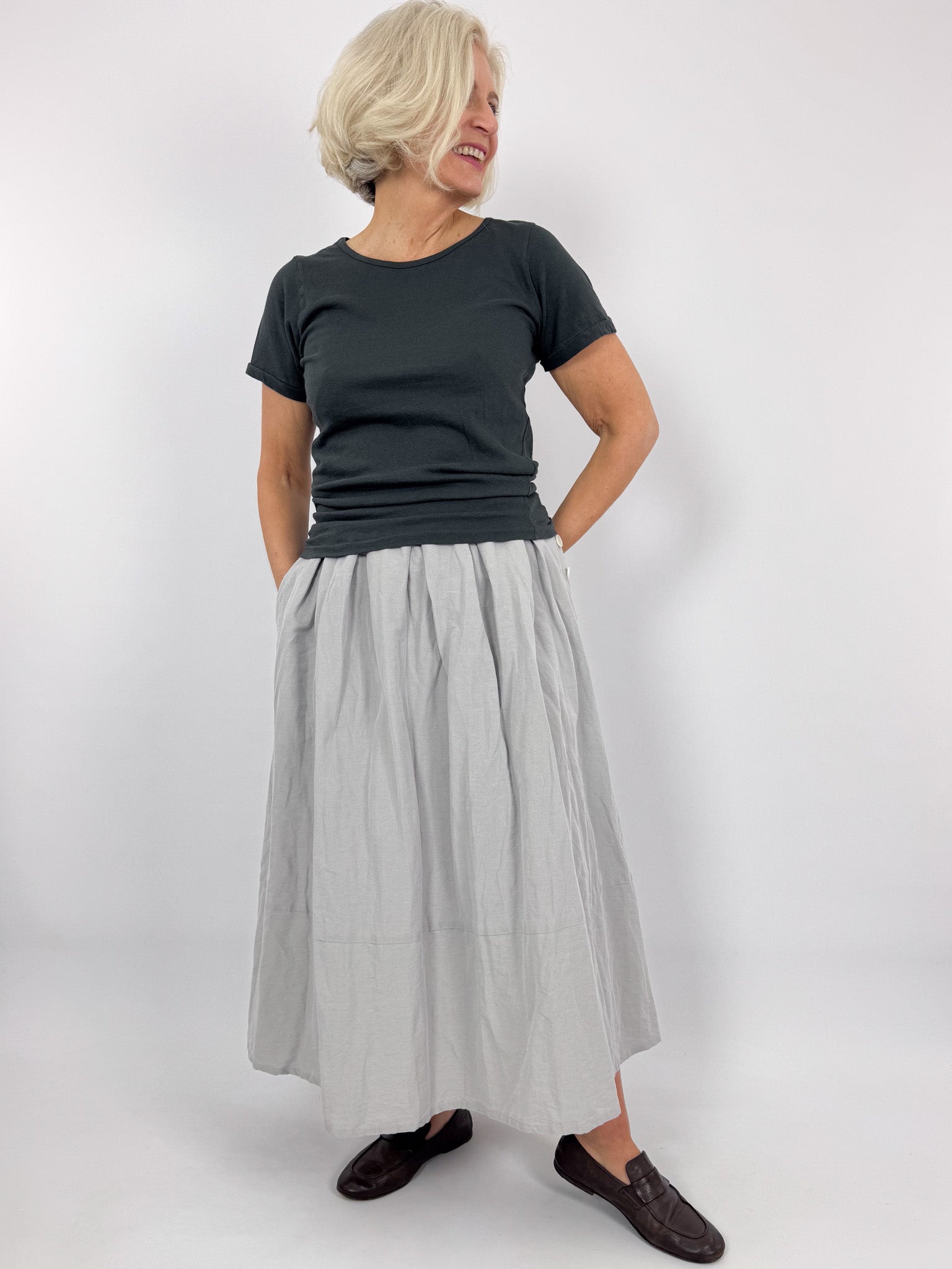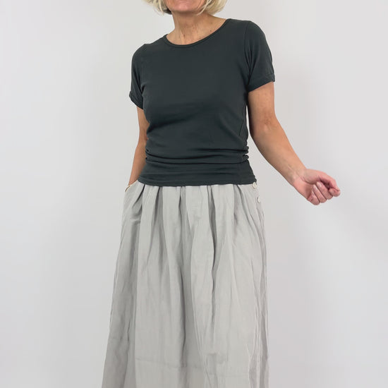 This classic Pas De Calais T-shirt combines artisanal craftsmanship with everyday wearability. The jersey fabric blends textured slub yarn with soft combed cotton, creating a distinctive vintage aesthetic that feels as refined as it looks. Knitted at 30 gauge for medium weight versatility, it transitions seamlessly across seasons. Garment-dyed for depth and character, with printed labels designed to prioritise comfort against skin. Engineered as an ideal layering piece, its relaxed silhouette and natural texture make it an indispensable foundation for any considered wardrobe.