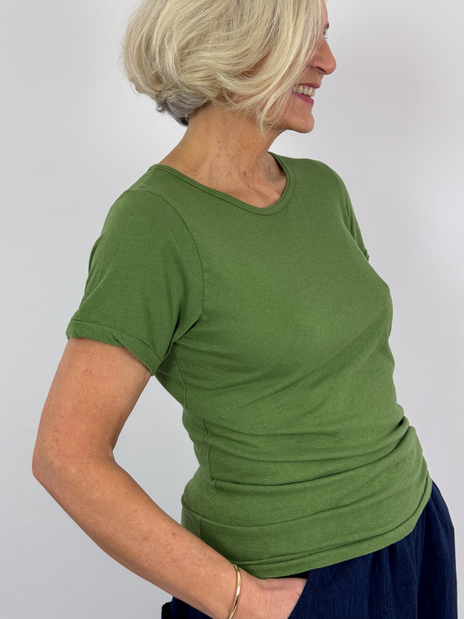 This classic Pas De Calais T-shirt combines artisanal craftsmanship with everyday wearability. The jersey fabric blends textured slub yarn with soft combed cotton, creating a distinctive vintage aesthetic that feels as refined as it looks. Knitted at 30 gauge for medium weight versatility, it transitions seamlessly across seasons. Garment-dyed for depth and character, with printed labels designed to prioritise comfort against skin. Engineered as an ideal layering piece, its relaxed silhouette and natural texture make it an indispensable foundation for any considered wardrobe.