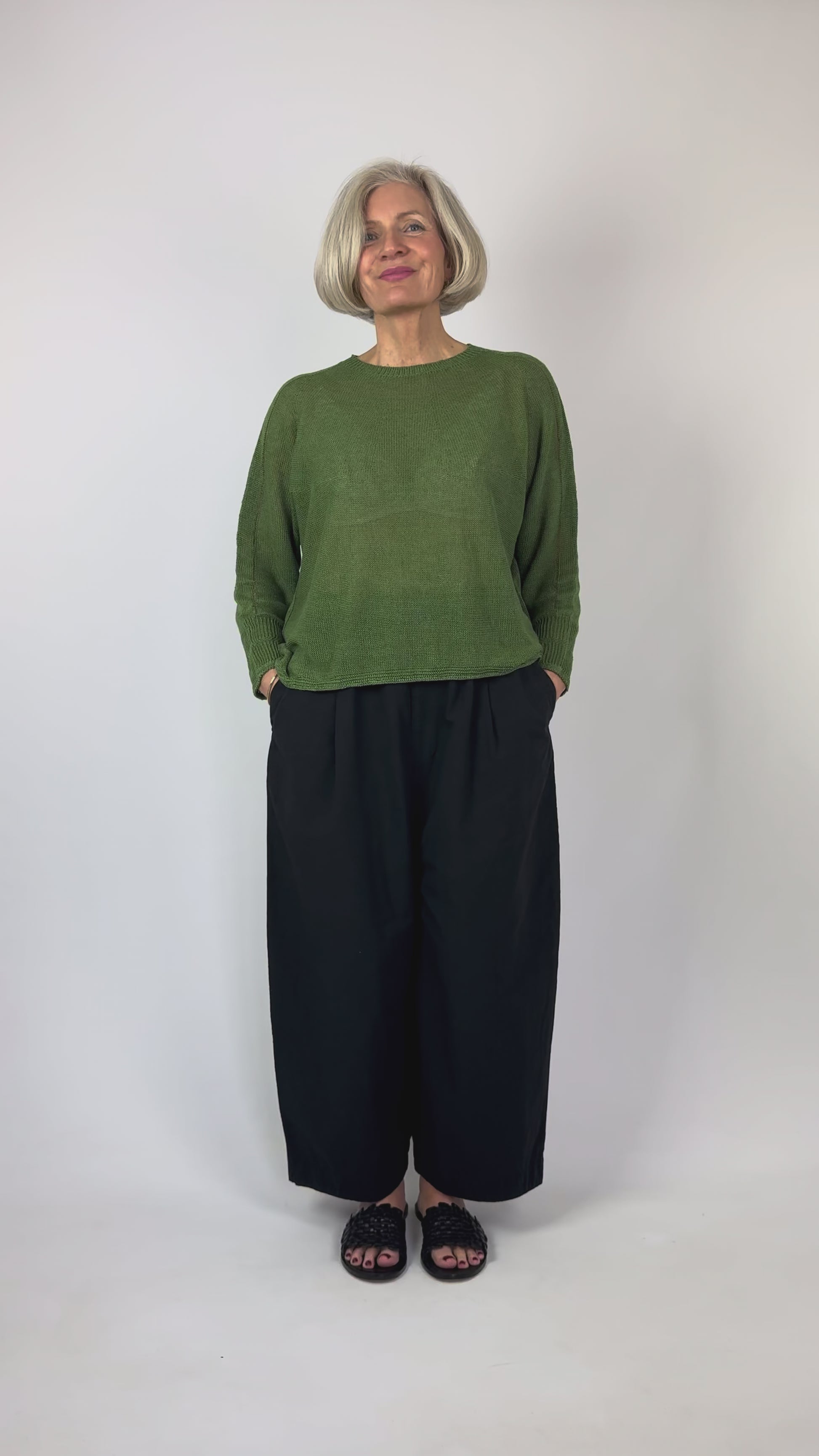 Crafted from 100% eco-friendly linen sourced from Normandy, this pullover showcases the region's finest textile heritage. The rope-dye technique imparts a distinctive denim-like character to the naturally textured fabric, while Whole-garment knitting technology minimises pilling and snagging—hallmarks of traditional linen construction. The result is a refined piece with pronounced lustre and tactile depth. Featuring a crew neckline with graduated front-to-back length, asymmetrical sleeve patterning, and an open-needle finish, this lightweight jumper balances understated sophistication with contemporary craftsmanship.