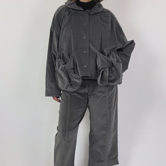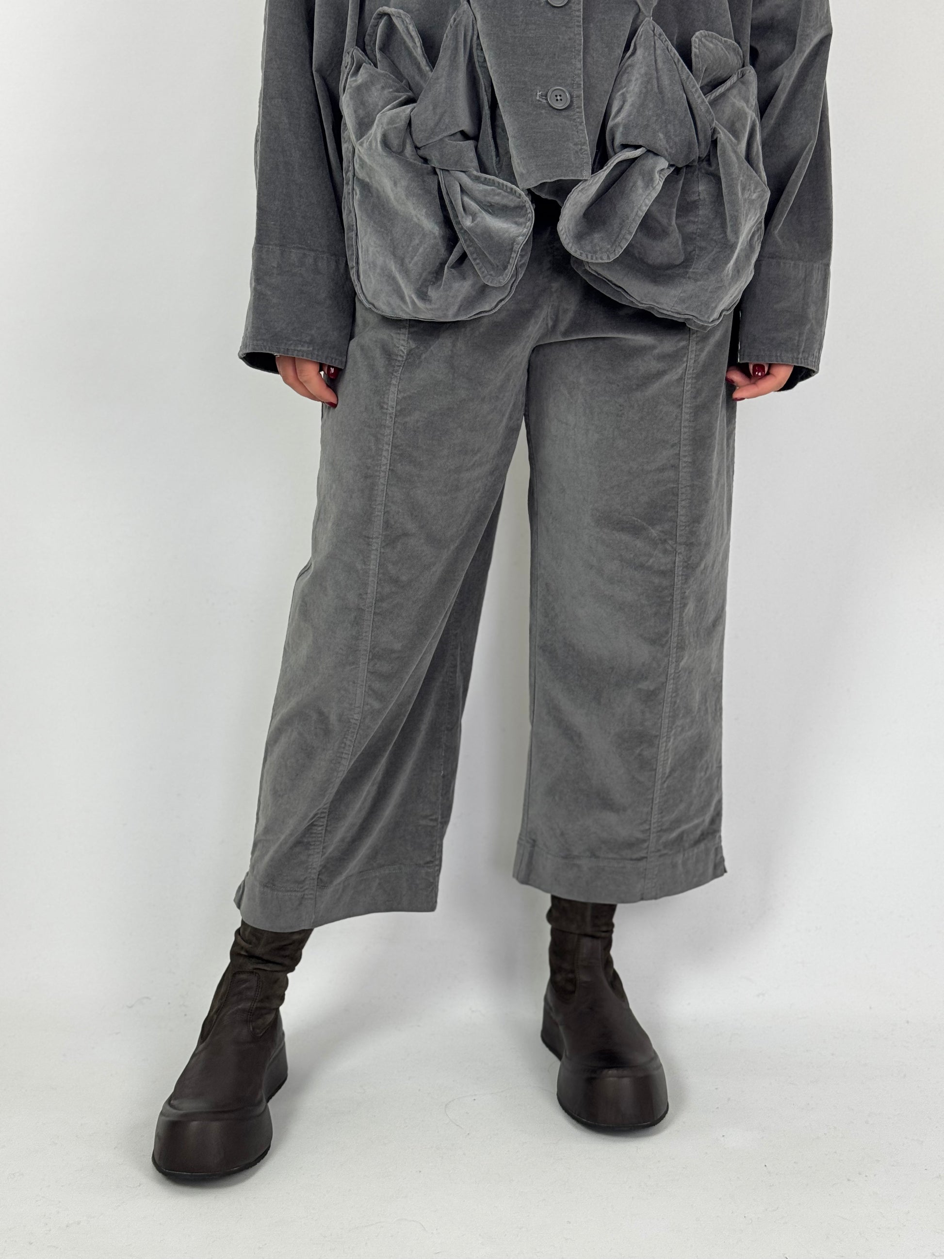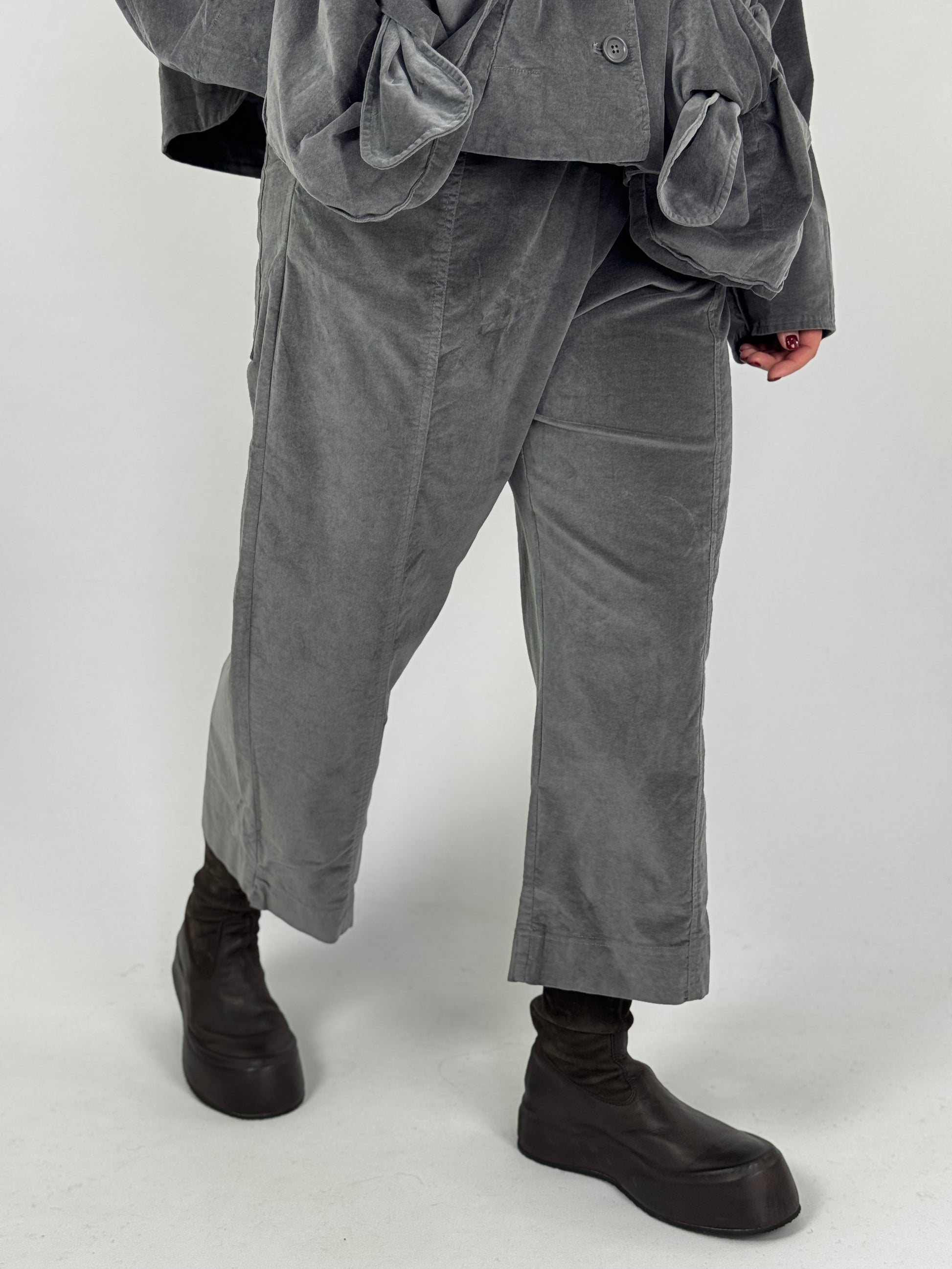 Crafted from cotton stretch velvet, these Rundholz Black Label 0102 trousers in dark grey offer both comfort and style. The cropped length and straight shape create a modern silhouette, while the pull-on design with subtle elastic at the waist ensures a perfect fit. Practical pockets add everyday functionality, making these trousers a versatile addition to any expert wardrobe.