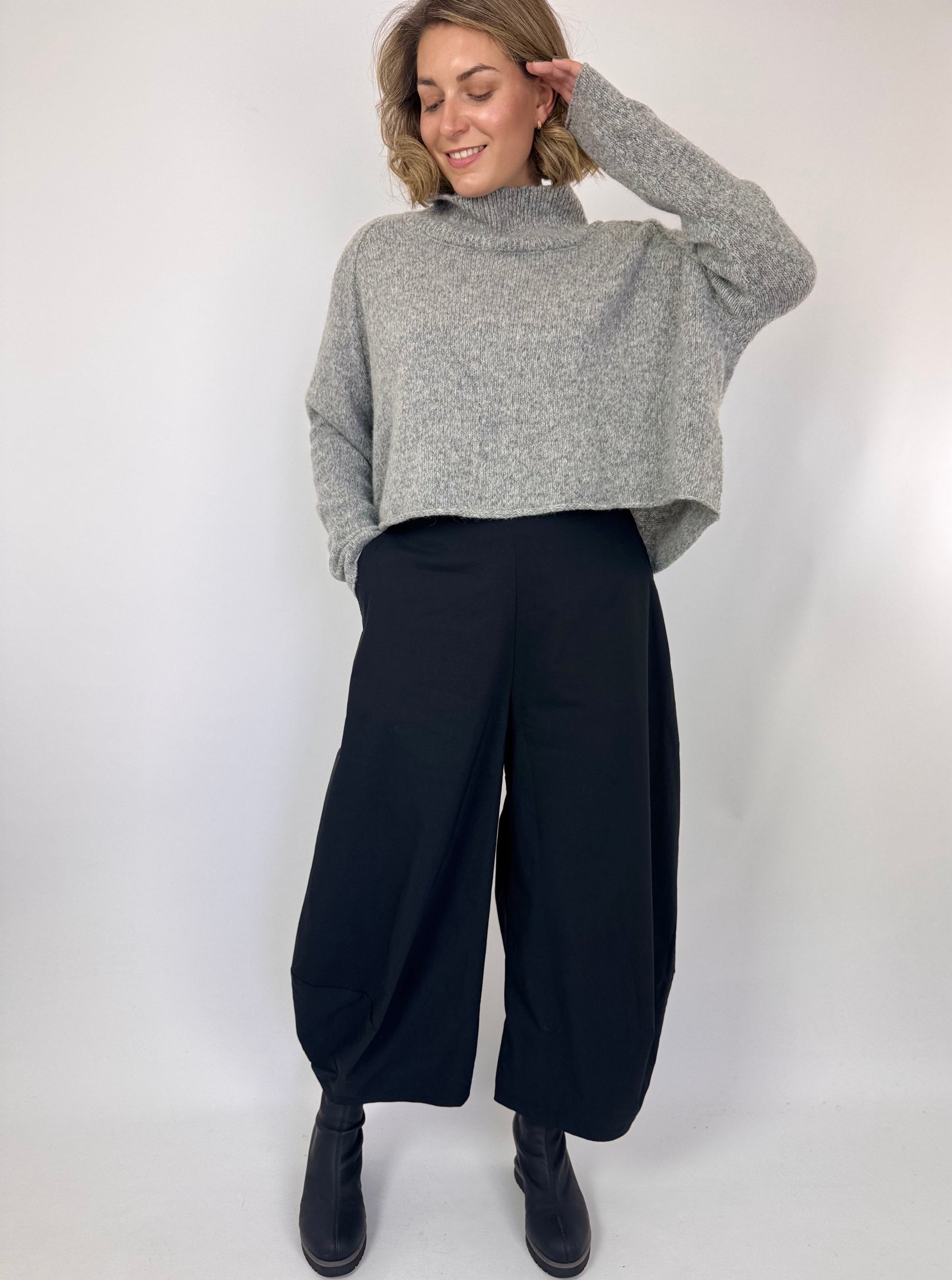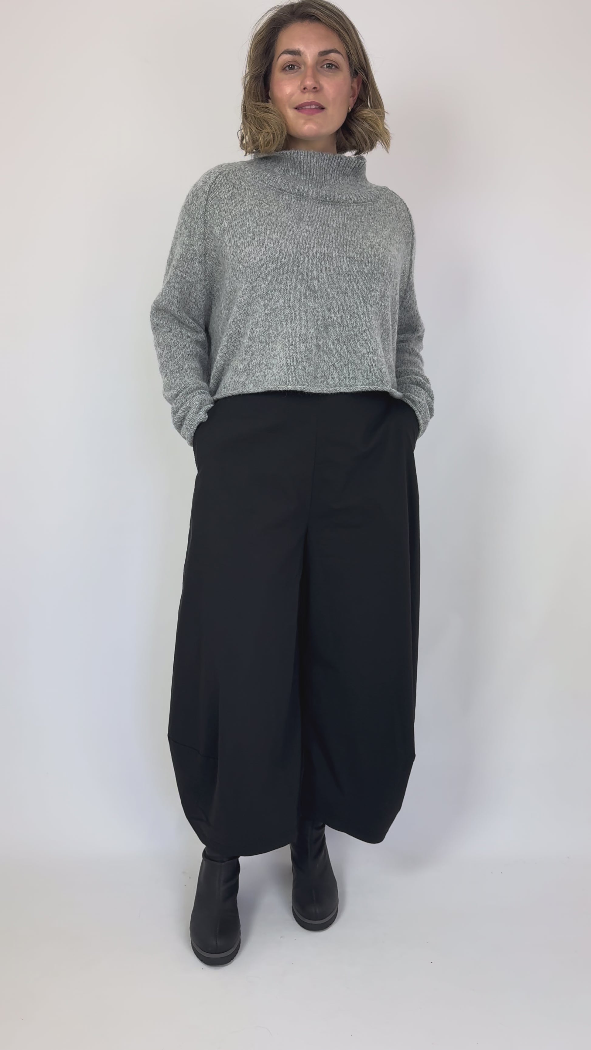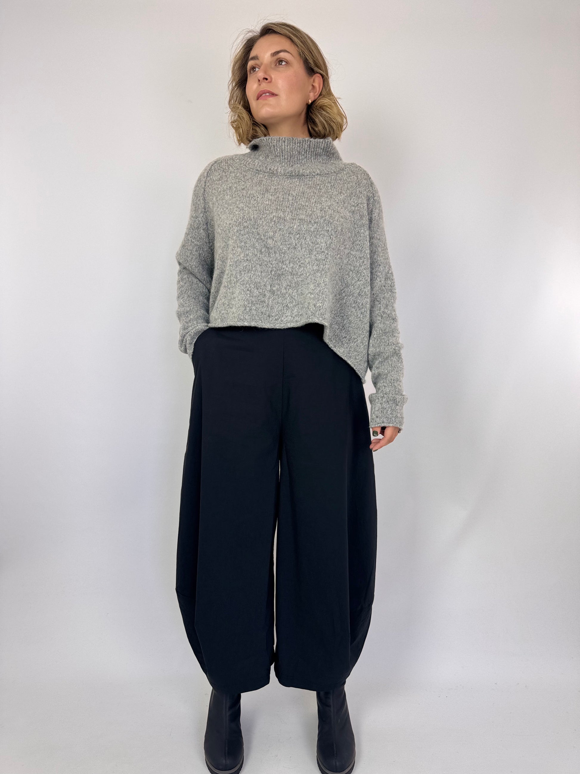 These Rundholz Black Label 0104 trousers feature a distinctive balloon shape that combines fashion with comfort. Crafted from a stretchy technical fabric, they ensure ease of movement and a flattering fit. Designed as a pull-on style for convenience, they also include practical side pockets, blending functionality with sophisticated style. Ideal for those seeking modern, versatile trousers with a technical edge.