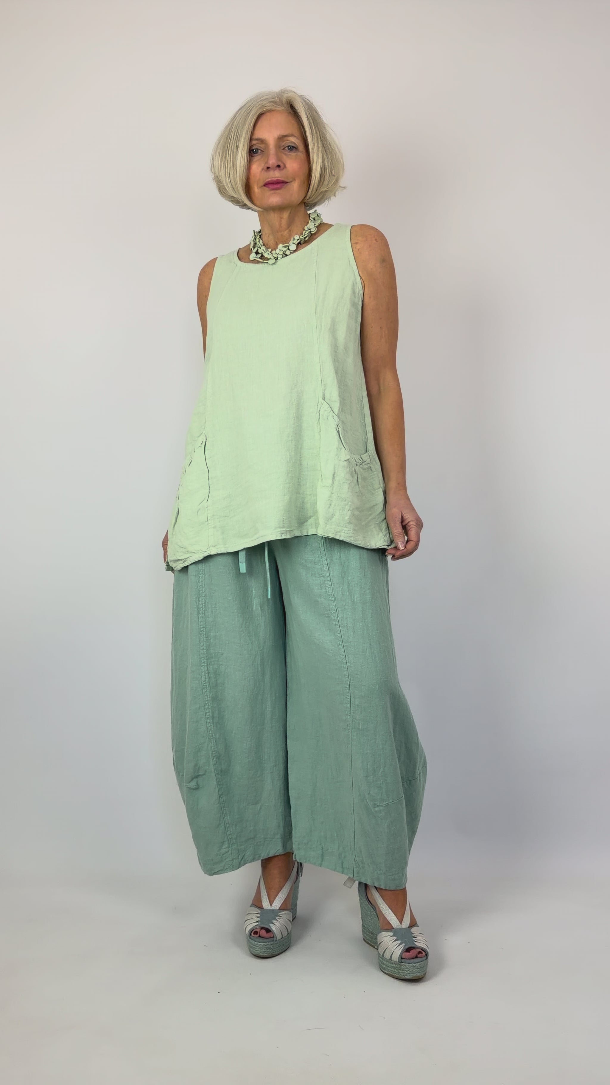 Crafted from sumptuous soft linen, these Rundholz Black Label trousers feature a relaxed balloon silhouette that moves effortlessly with you. The elasticated waistline with adjustable drawstring ensures a personalised fit, whilst practical side pockets add everyday functionality. Ideal for warm weather, this mint hue offers versatile styling potential for refined, understated elegance.