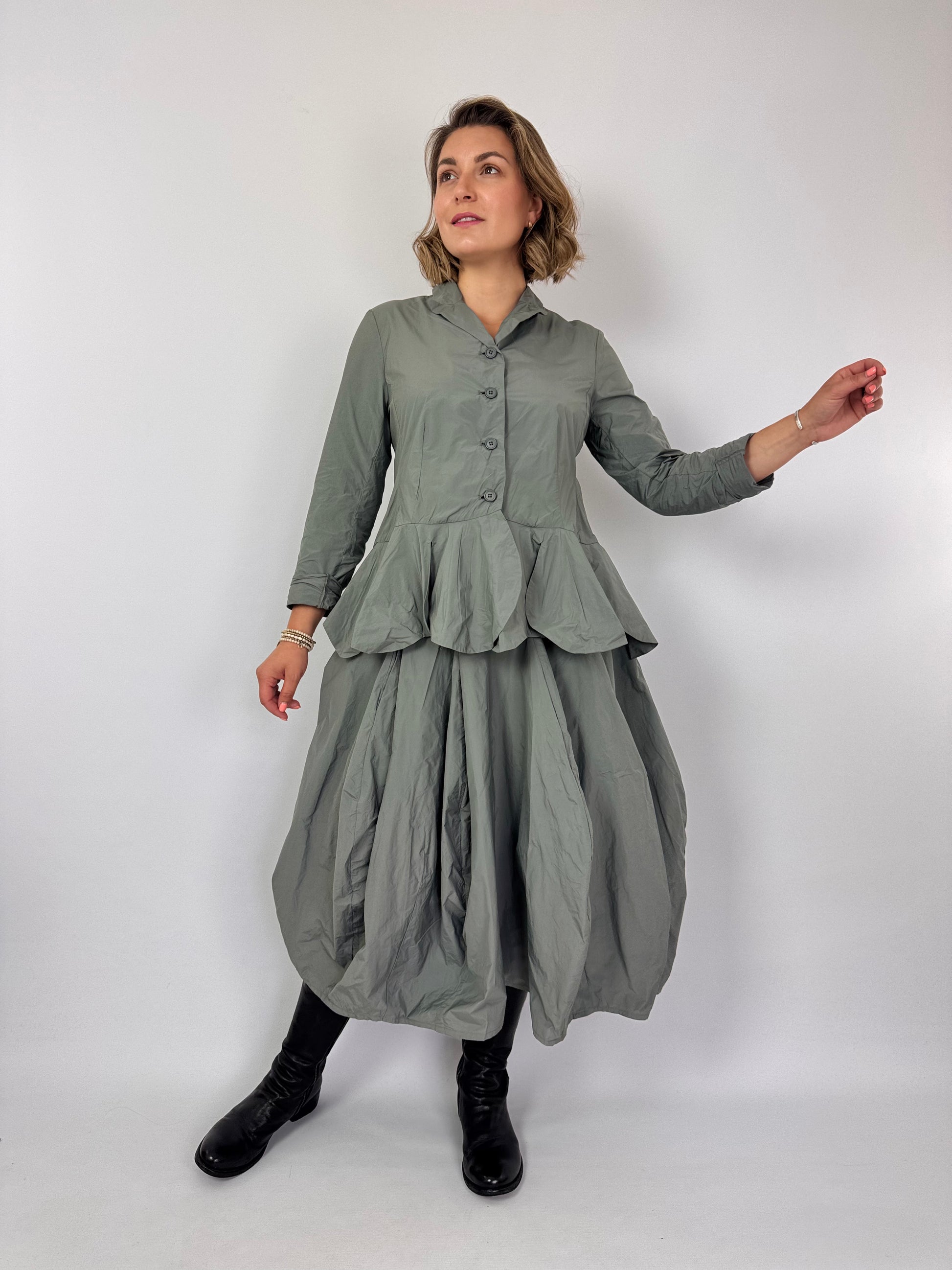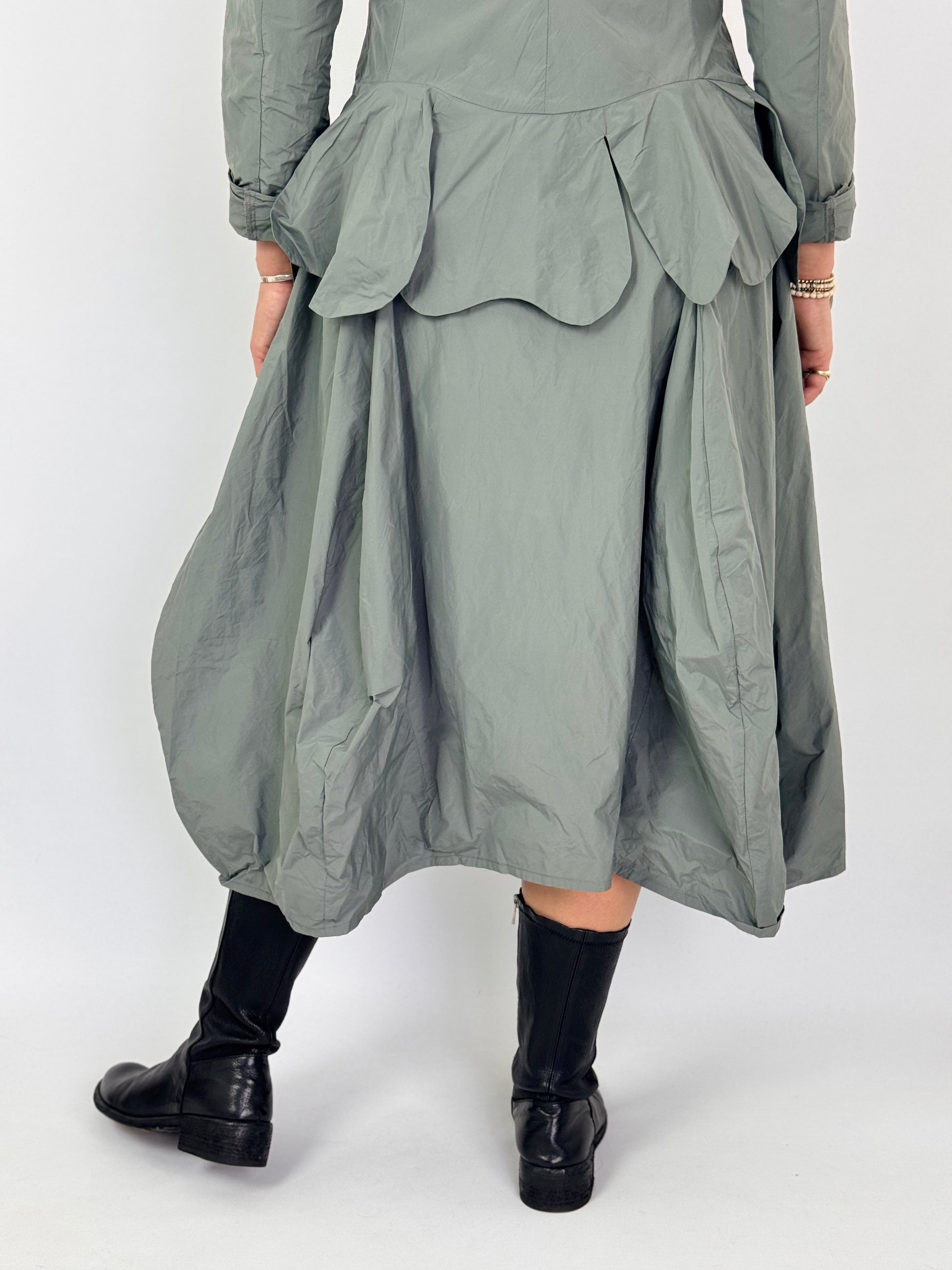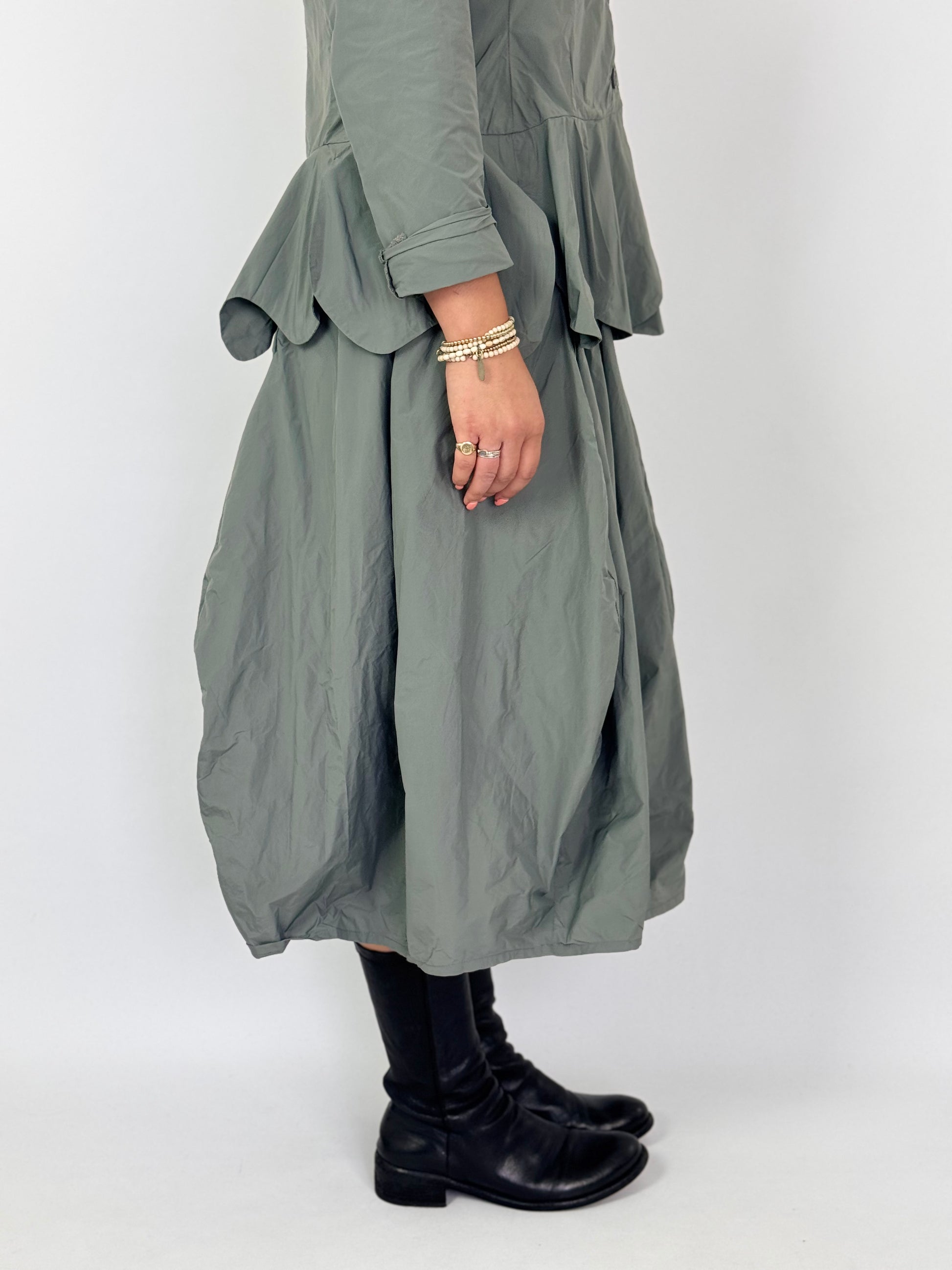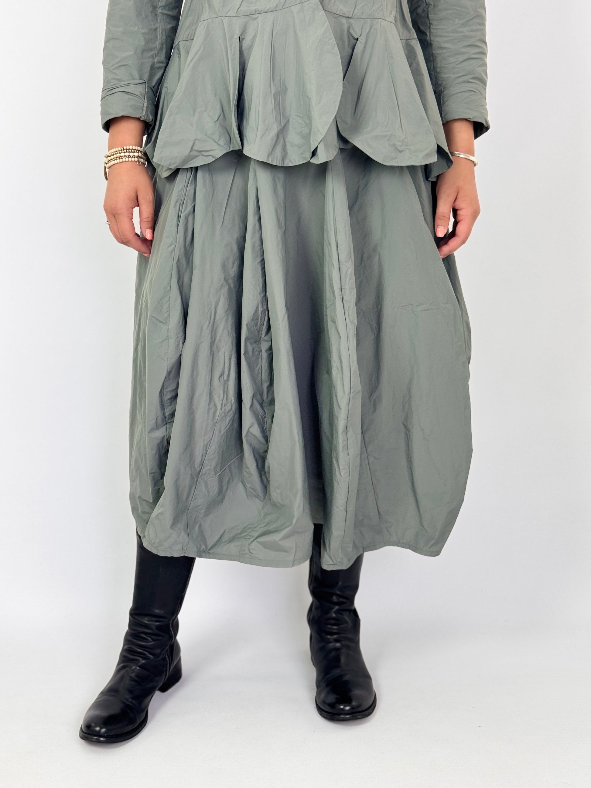 The Rundholz Black Label 0304 Skirt in Dark Grey features a sophisticated balloon shape enhanced by seam detailing. Its subtle sheen adds a refined, dressy touch while maintaining a lightweight feel for comfortable wear. Zip fastening. Perfectly paired with the matching jacket, this skirt creates a chic and elegant autumn outfit, balancing style with ease.