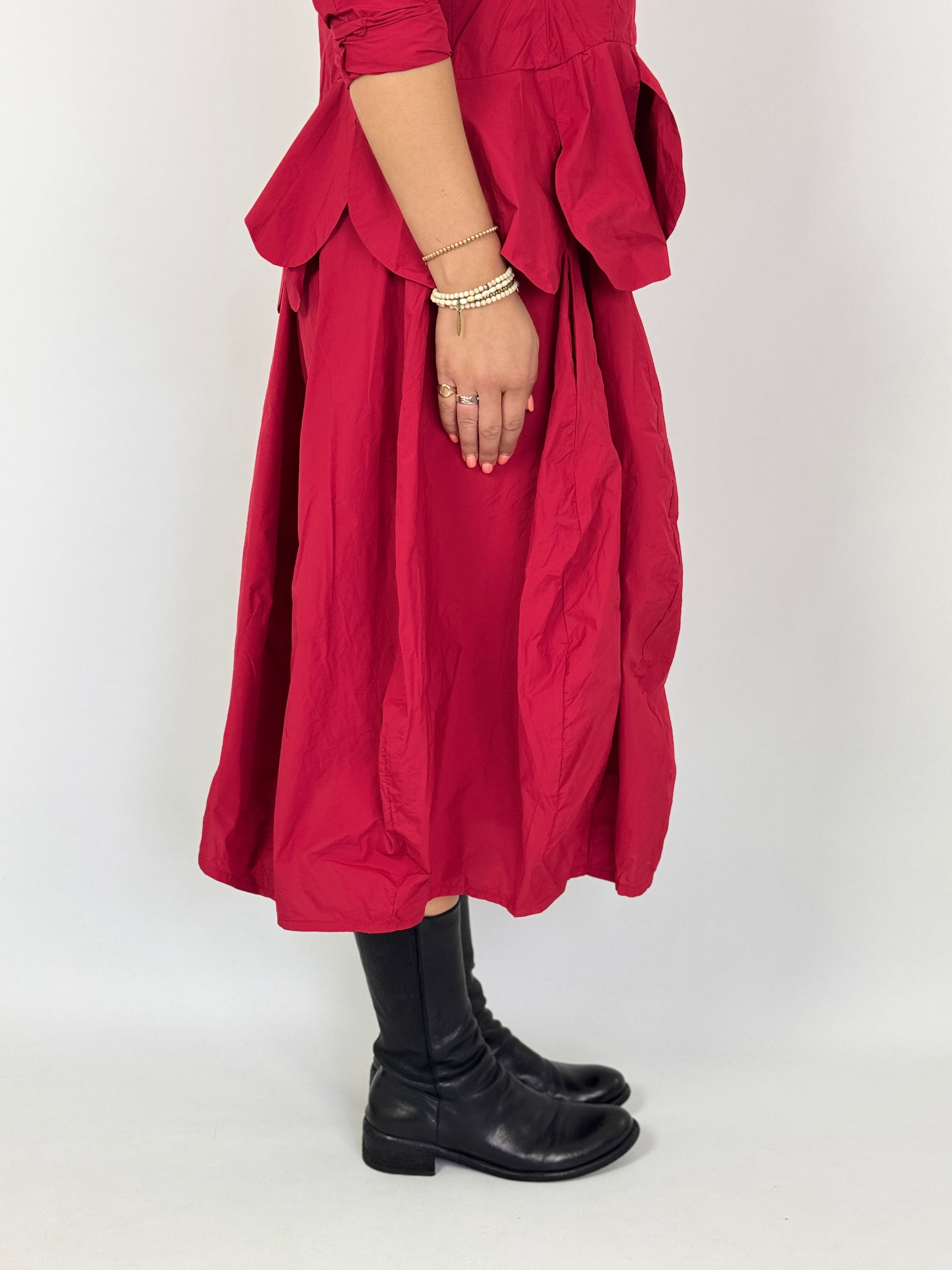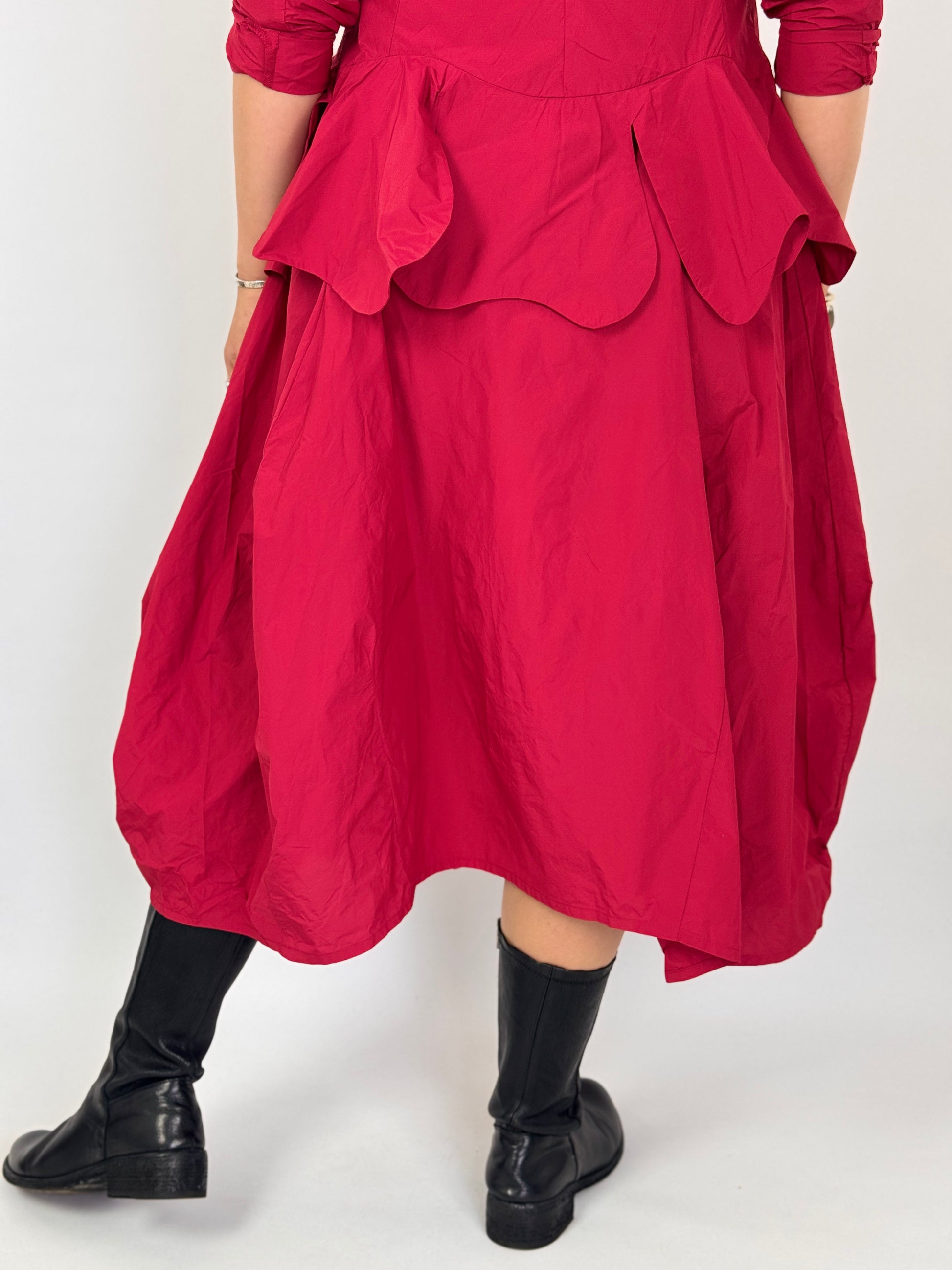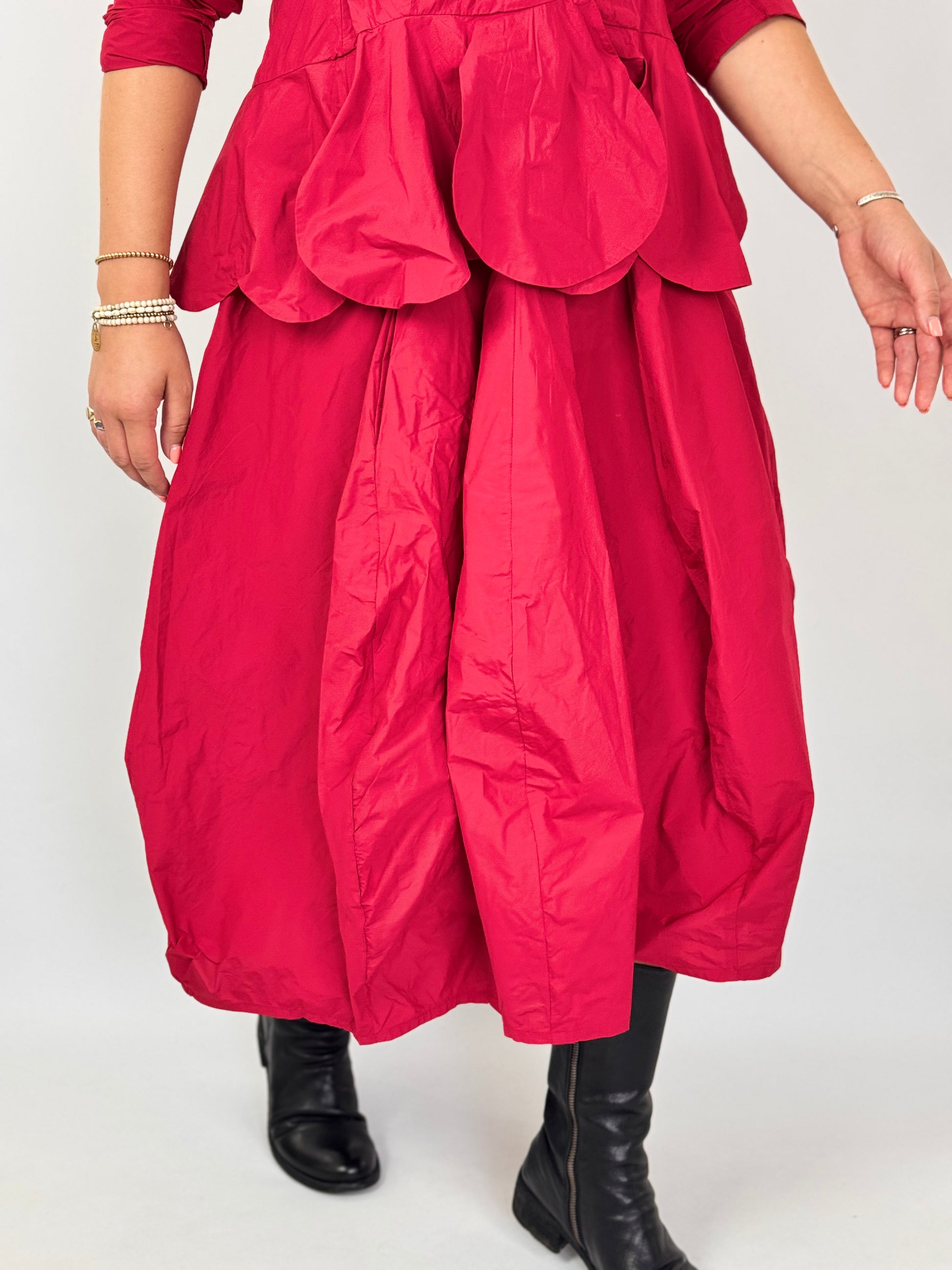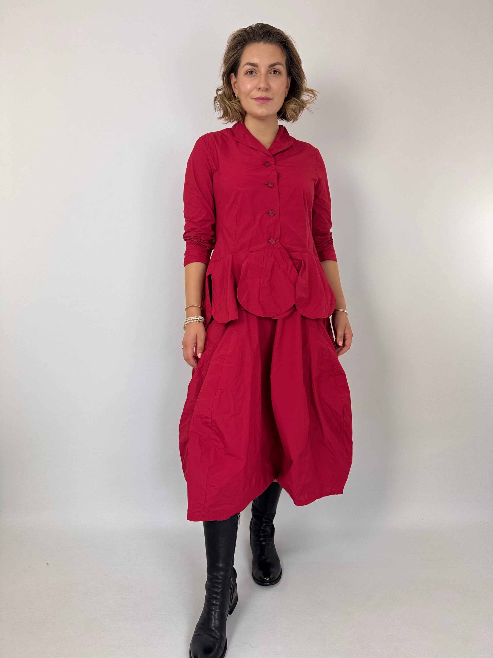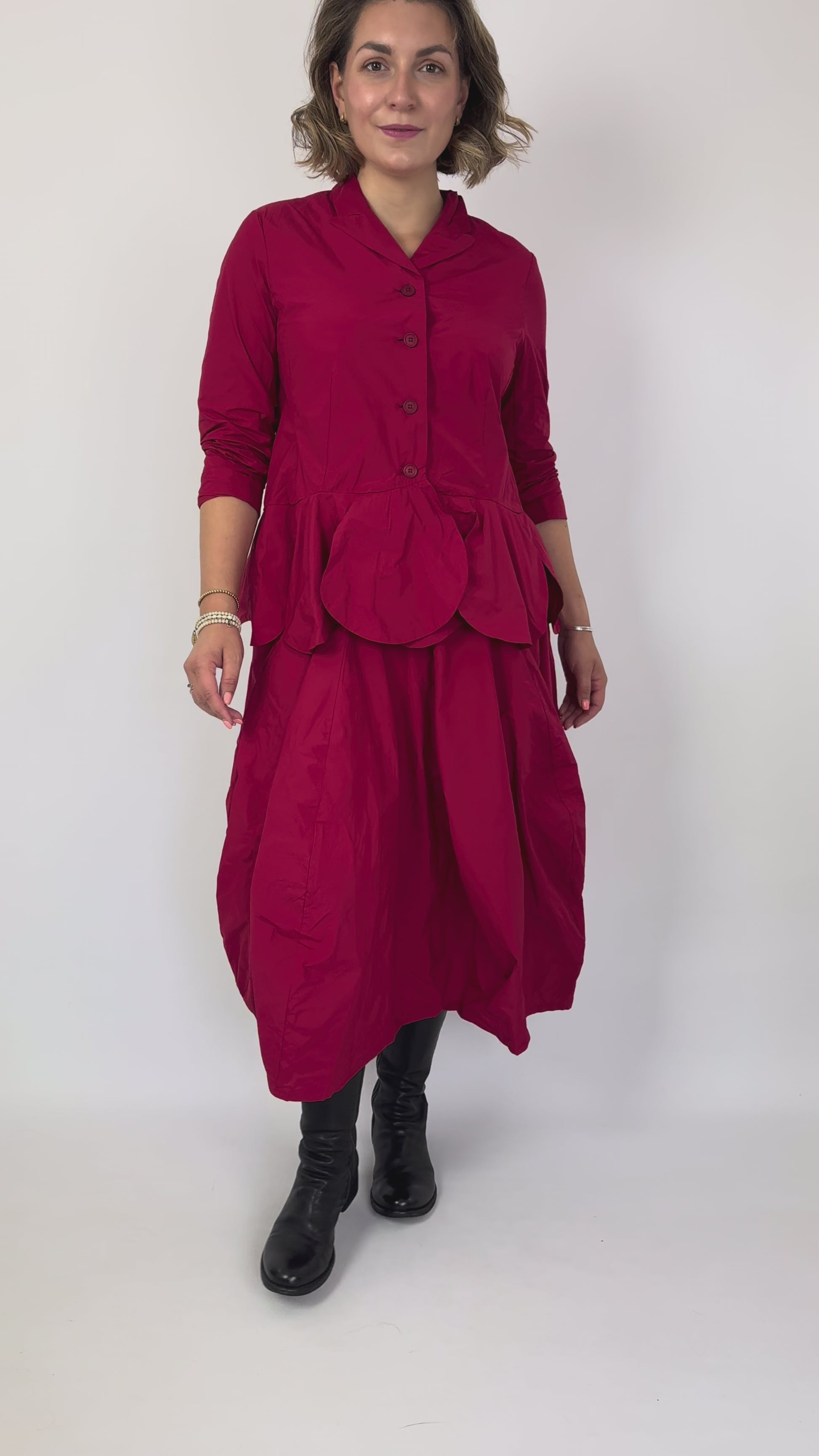 The Rundholz Black Label 0304 Skirt Rose features a sophisticated balloon shape enhanced by seam detailing. Its subtle sheen adds a refined, dressy touch while maintaining a lightweight feel for comfortable wear. Zip fastening. Perfectly paired with the matching jacket, this skirt creates a chic and elegant autumn outfit, balancing style with ease.