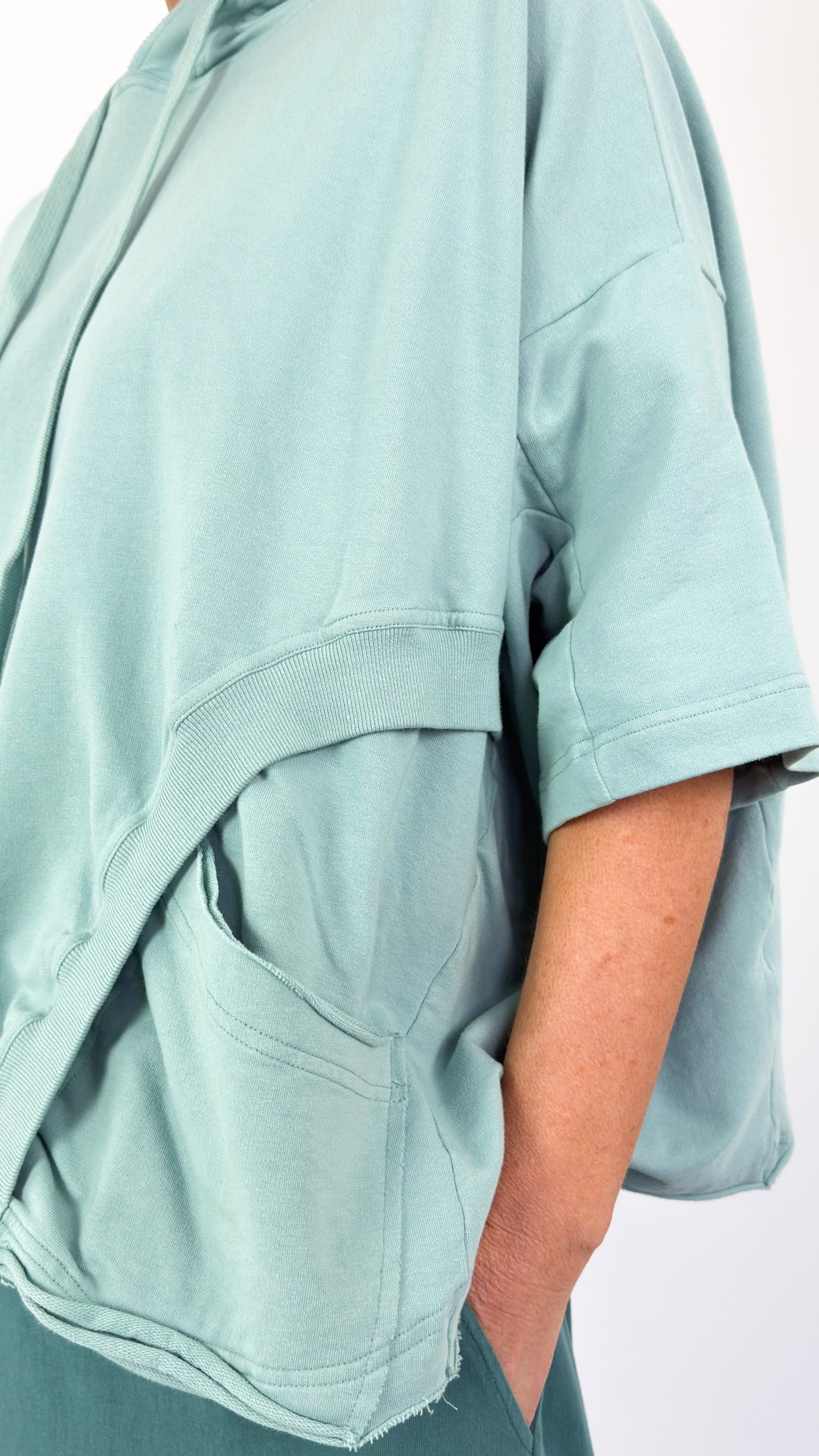 Crafted from soft cotton, this hooded jumper features a relaxed, wide silhouette with subtle balloon proportions for effortless comfort. A drawstring cinches the neckline for adjustable styling, while ribbed detailing frames the side pockets. Perfect for layering or wearing solo, this piece combines understated elegance with contemporary ease.