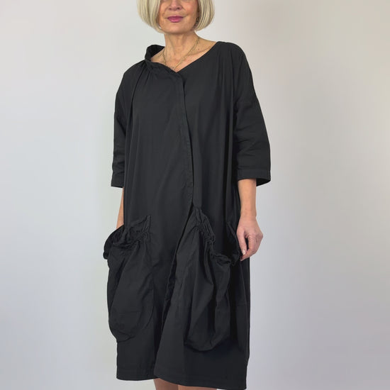 Crafted from premium cotton, this Rundholz Black Label dress embraces an intentionally loose silhouette with architectural precision. The exaggerated front pockets feature distinctive gathered detailing that adds sculptural dimension, while the gathered round neckline softens the overall composition. A masterclass in contemporary minimalism, this piece balances comfort with refined design sensibility.