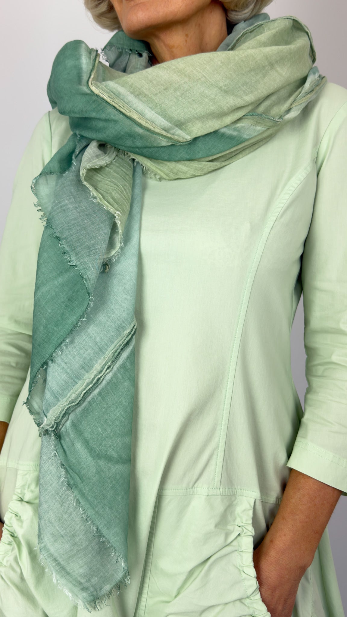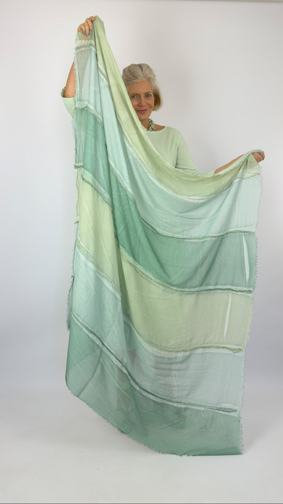 Crafted from translucent, crinkled fabric, this Rundholz Black Label scarf combines ethereal lightness with tactile softness. The signature colours from this season's collection is crafted into a stripe, while deliberately frayed edges add an artisanal finish. The floaty drape makes it versatile for layering or styling as a statement piece, effortlessly elevating any ensemble with contemporary sophistication.