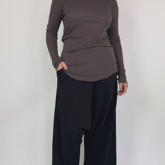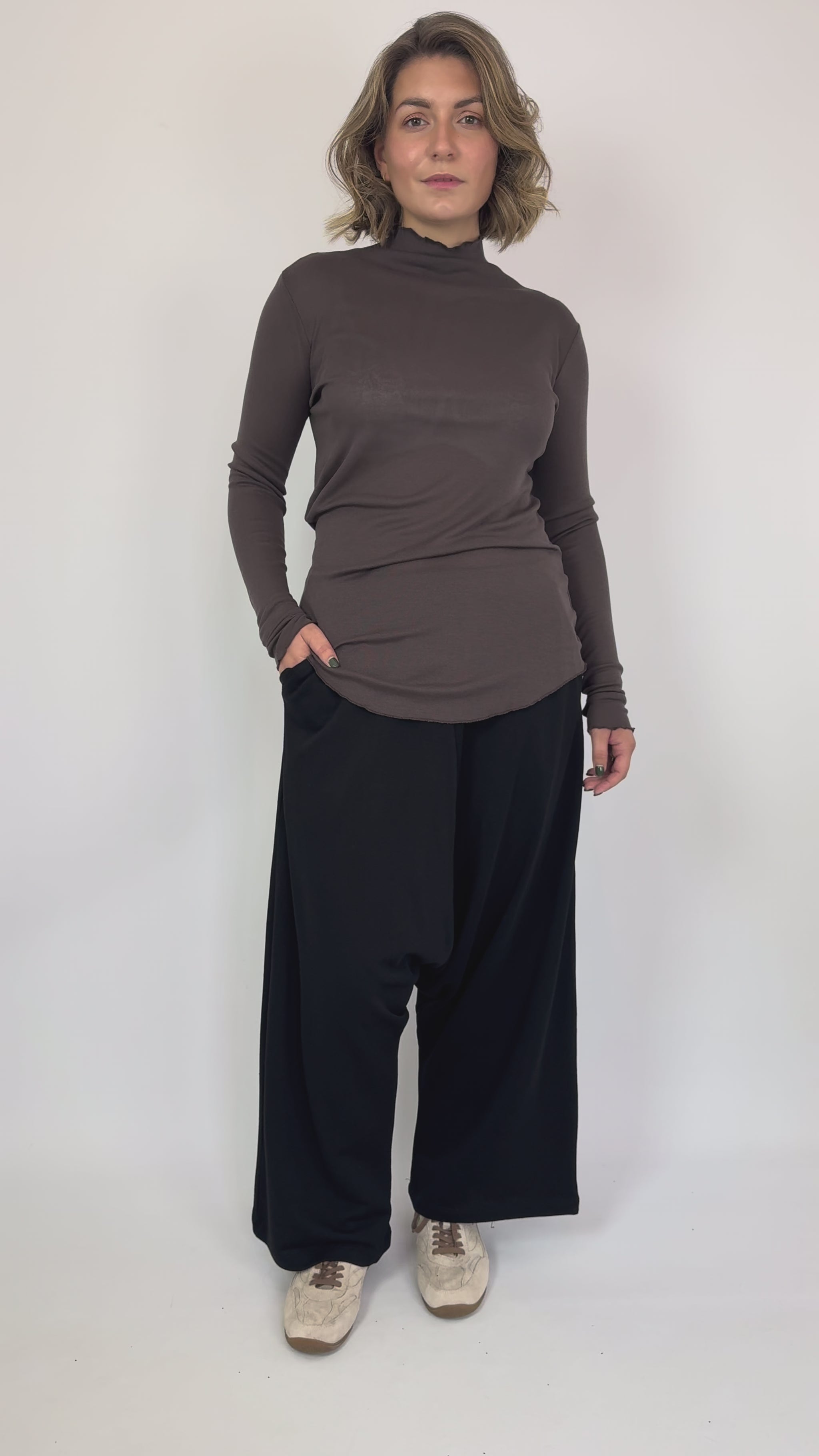 These Sort Aarhus 1110 trousers in black offer exceptional comfort with their super soft fabric and relaxed dropped crotch design. The elasticated waistline ensures a secure yet flexible fit, making them ideal for all-day wear while maintaining a modern silhouette. Perfect for those seeking a blend of style and ease in their wardrobe.