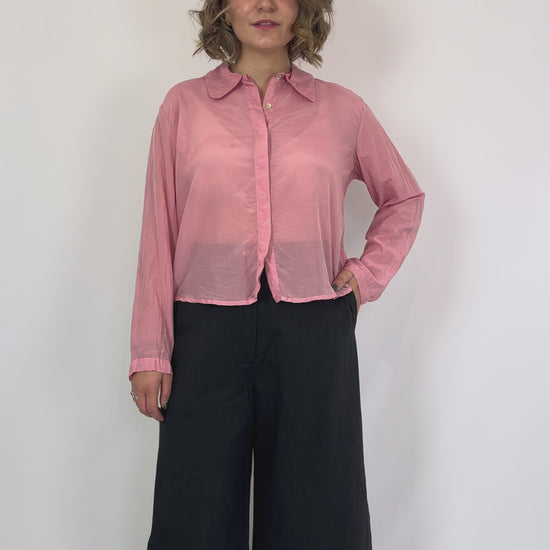 Crafted from delicate silk cotton voile, the Sula Secret Button Shirt in Rose Tan offers a close-fitting silhouette enhanced by neat wrist-length sleeves and an elongated collar. Its signature mother-of-pearl buttons are discreetly concealed behind a refined placket, blending effortless elegance with subtle craftsmanship. This blouse’s slightly sheer fabric brings a light, graceful touch to any ensemble, making it a sophisticated choice for layering or standalone wear.
