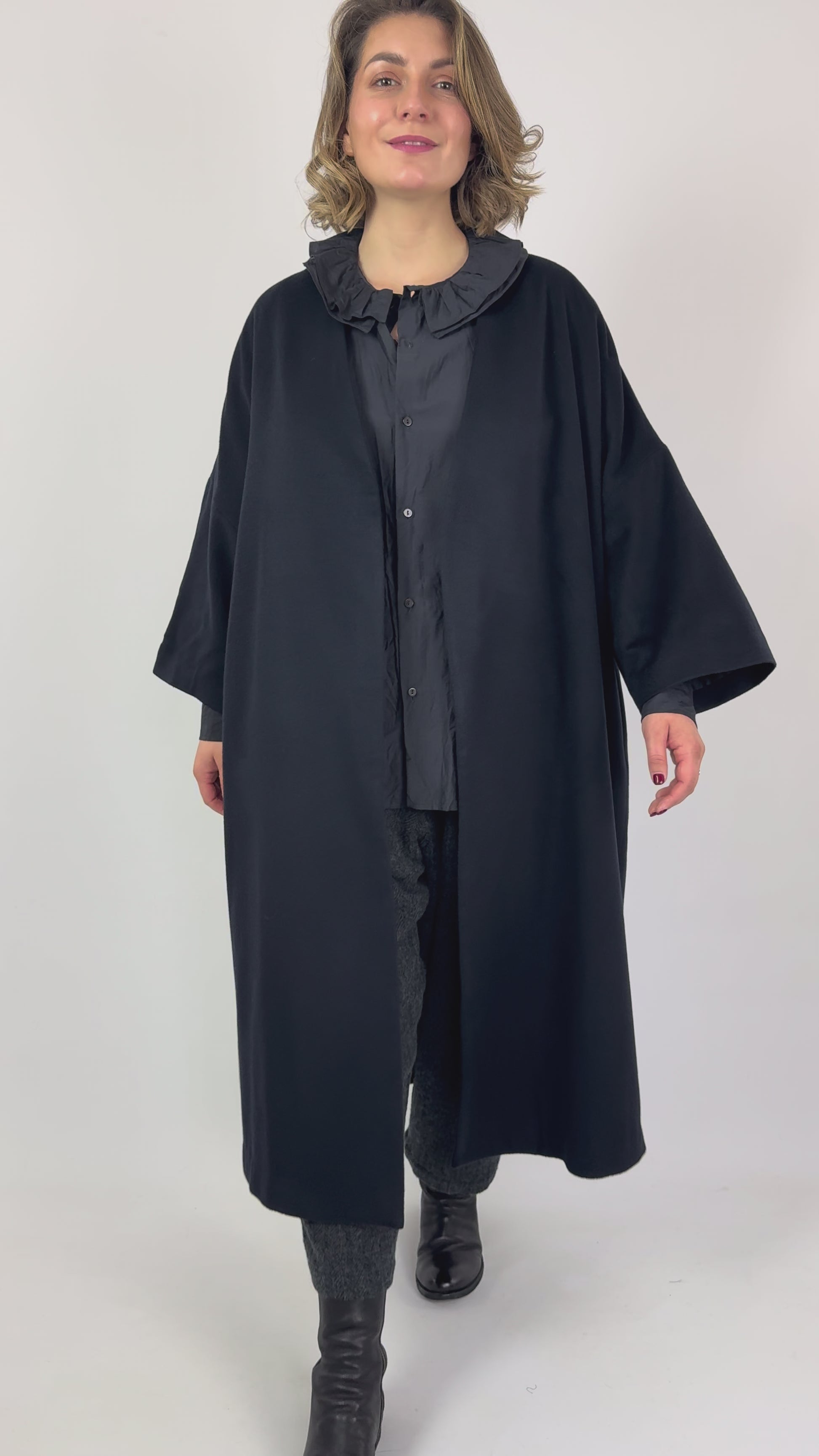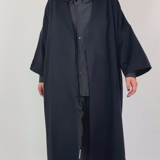 Elevate your outerwear with the TouJours Evening Coat in Navy, crafted from 100% cashmere for unparalleled softness and warmth. This elegant, loose-fit coat features wide sleeves and no fastening, offering a graceful silhouette and effortless layering. The smooth silk/cotton lining enhances comfort while maintaining a luxurious feel. Perfect for sophisticated evenings, it combines timeless style with supreme quality, making it a refined addition to any wardrobe.