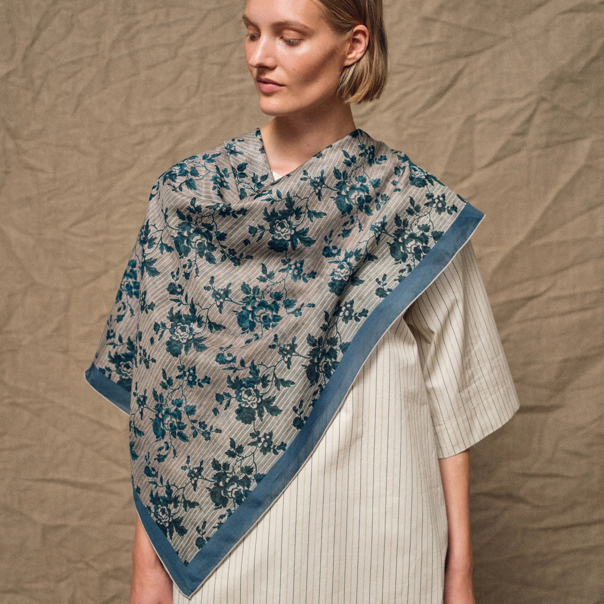 Large lightweight scarf made from a soft blend of cotton and silk.