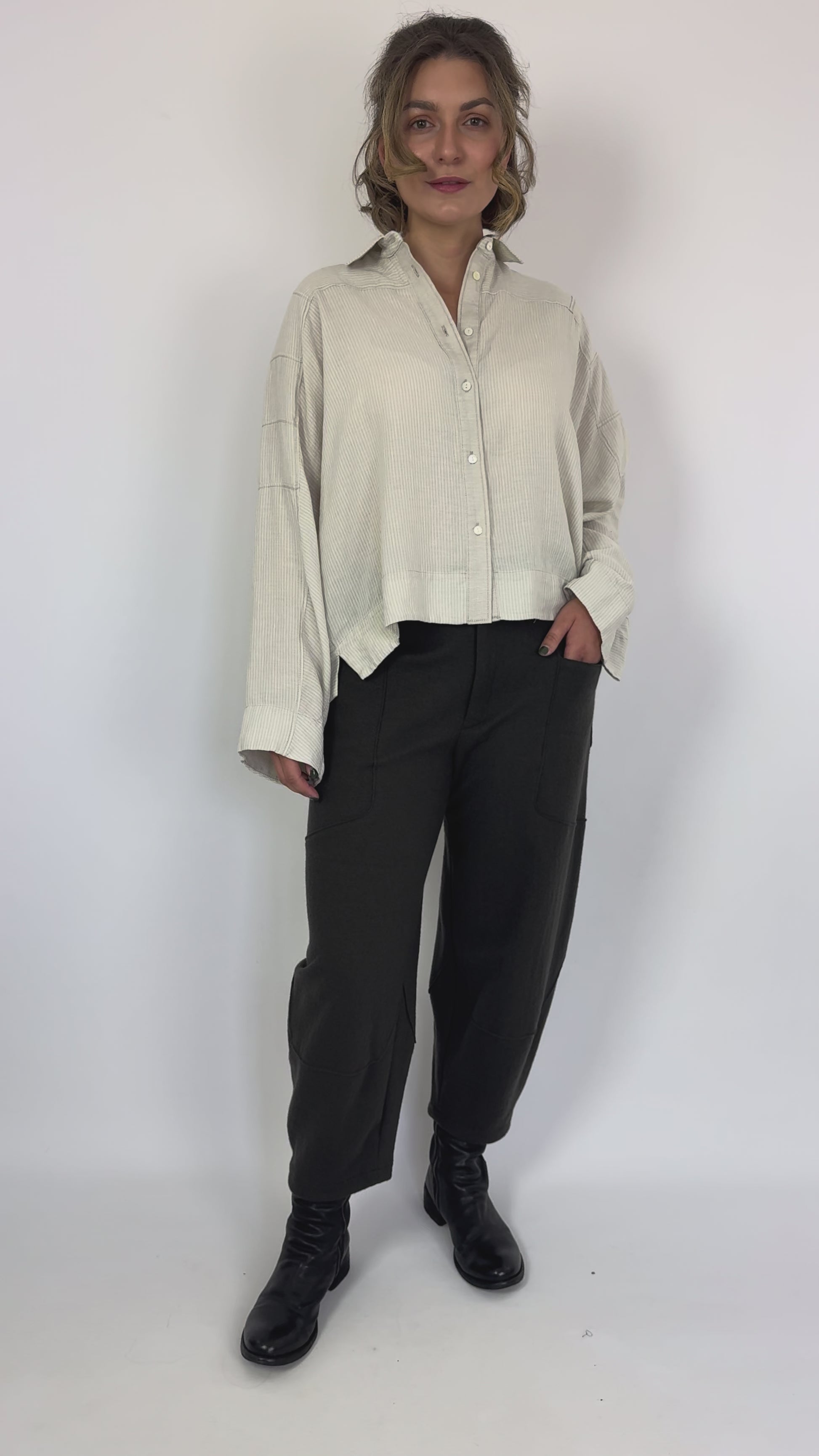 These Transit Par-Such U303 trousers in mud grey feature a subtle cocoon shape crafted from soft wool for premium comfort and structure. Designed with practical pockets and a secure button and zip fastening, they blend refined tailoring with everyday functionality. Ideal for those seeking sophisticated style without compromising on ease.